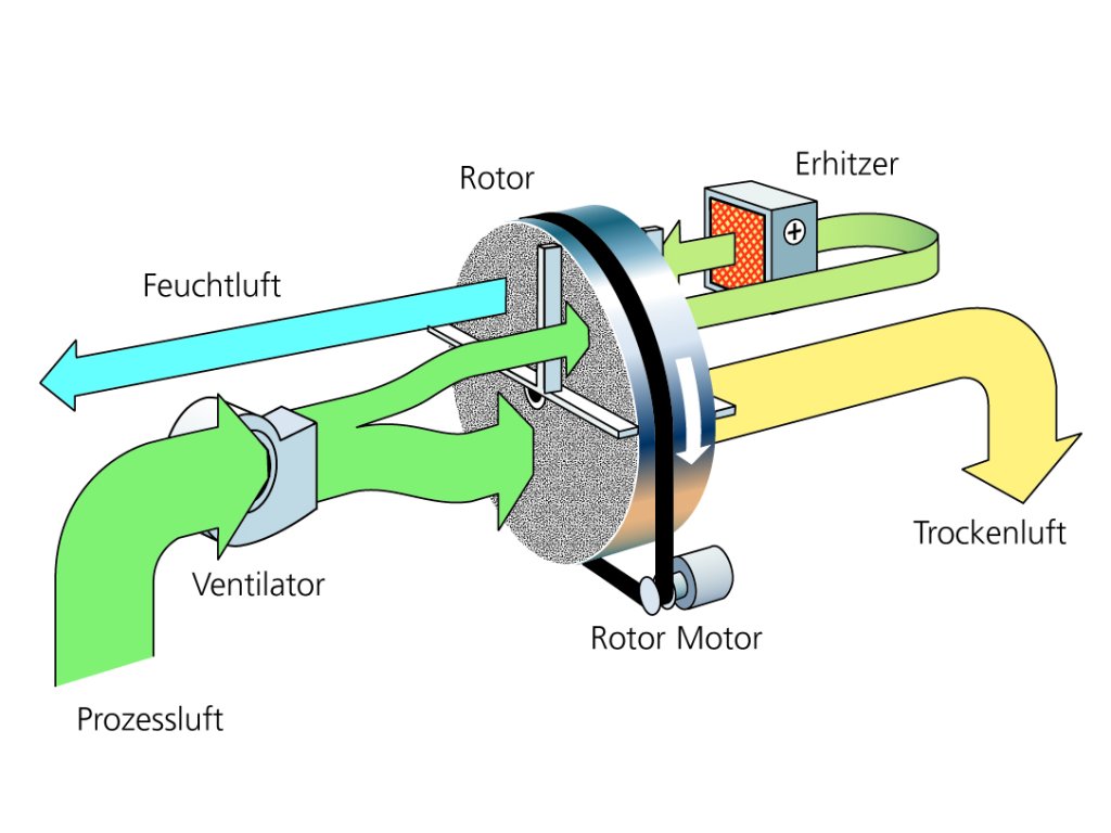 Během regeneračního procesu je teplo absorbováno materiálem rotoru. Toto teplo směřuje do mycího sektoru, kde se předehřívá vstupující regenerovaný vzduch a snižuje se jeho obsah vlhkosti.