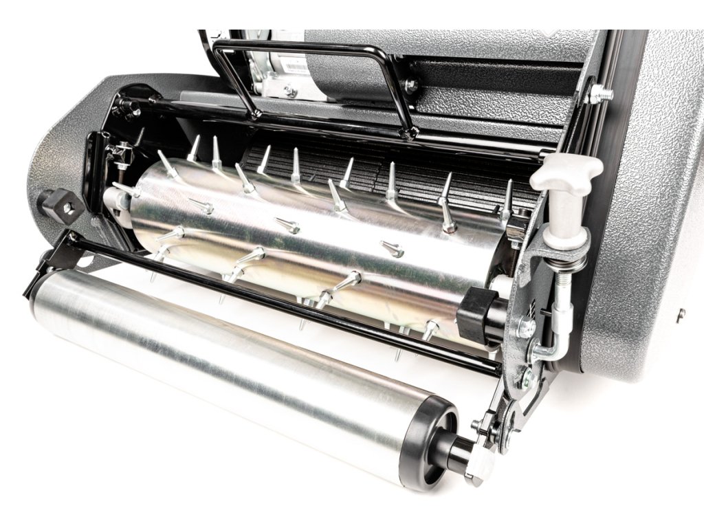 - Kazeta je vyrobena z odolné oceli, osazena množstvím šroubovaných hrotů a její konstrukce je navržena pro snadnou výměnu pomocí rychloupínacího systému. Vhodná pro jarní a podzimní údržbu trávníku, ale i pravidelnou regeneraci během sezóny.