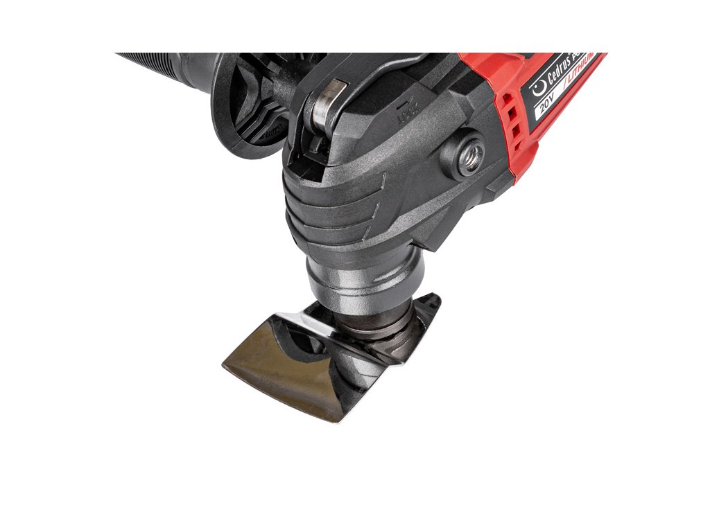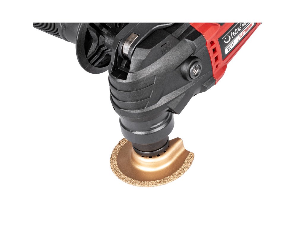 Multifunkční aku zařízení Cedrus MTLi je navrženo pro všestranné použití při řezání, pilování, broušení, seškrabování a renovaci povrchů. S pomocí 6stupňové regulace otáček, přídavného bočního držadla a světla LED nabízí vysokou přesnost i při práci v hůře přístupných místech.