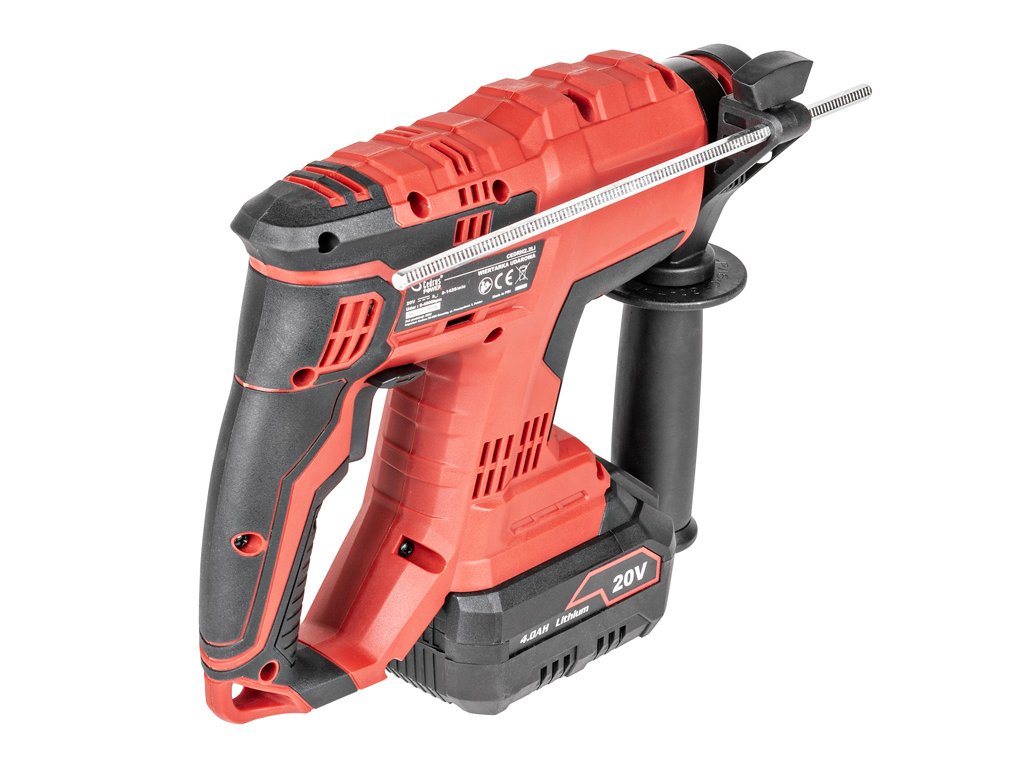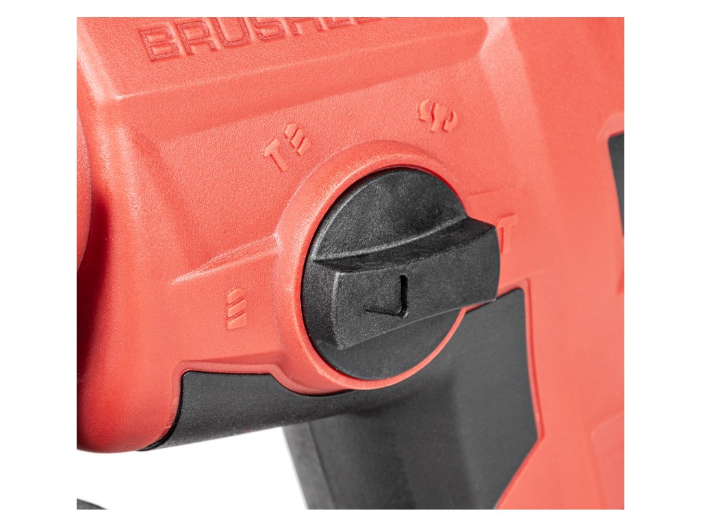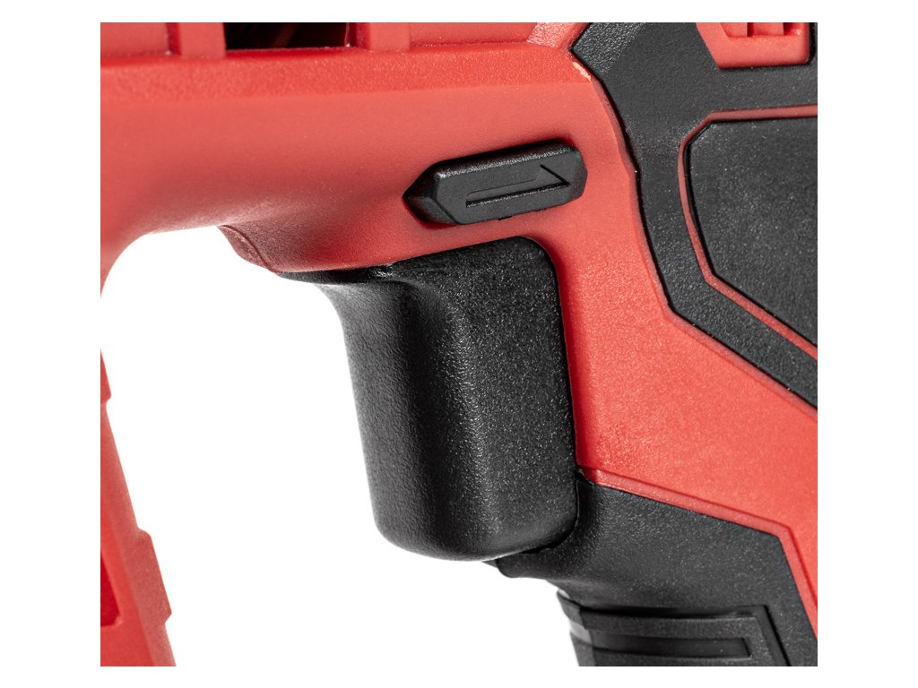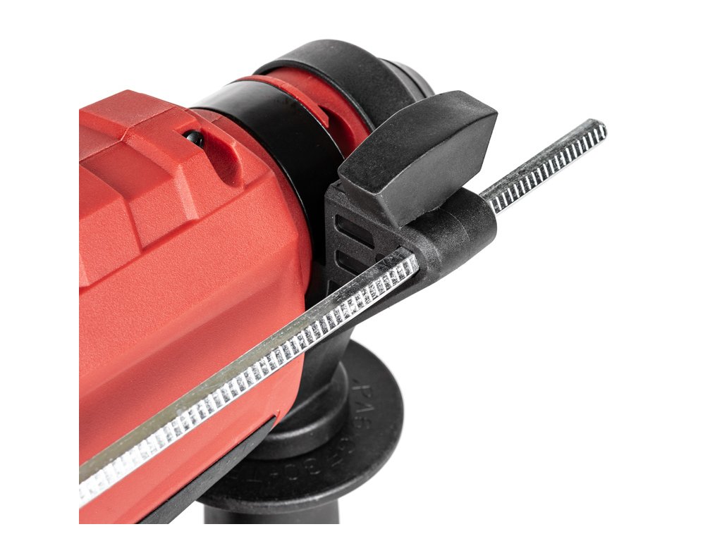 - Vrtačka je vybavena systémem SDS+ pro rychlou výměnu nástrojů, regulací otáček, přepínáním směru otáčení a ochranou proti přetížení. Ergonomický design s otočnou rukojetí o 360°, antivibrační zadní rukojetí a integrovaným LED osvětlením zvyšují komfort a bezpečnost při práci.