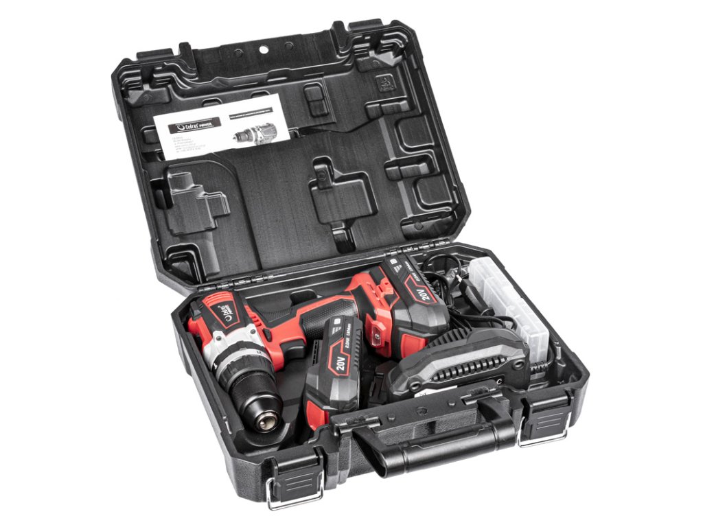 - Součástí sady jsou 2 baterie 2.0 Ah, nabíječka, sada bitů a vrtáků a pevný transportní kufr – vše připraveno k použití ihned po rozbalení. Kompatibilní s platformou Cedrus Power+ 20 V.
