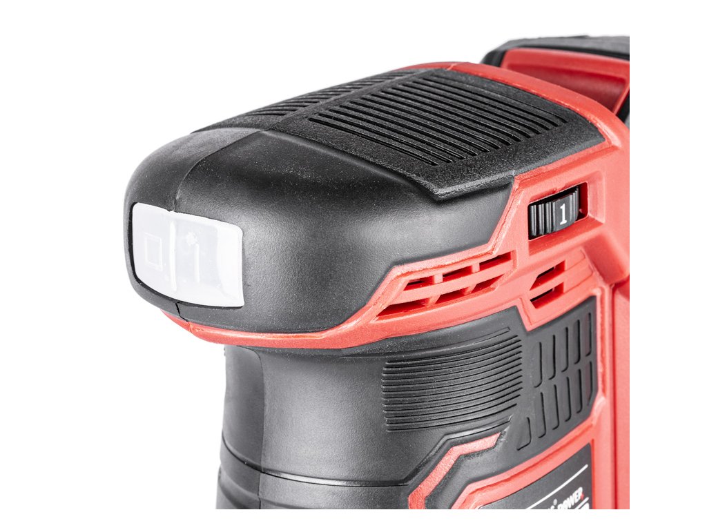 - Bruska je vybavena LED osvětlením, které zlepšuje viditelnost pracovního prostoru, a systémem pro odsávání prachu pomocí připojitelného vaku, což zvyšuje čistotu a bezpečnost při práci. Teleskopická regulace otáček a ergonomické madlo přispívají k maximálnímu komfortu.