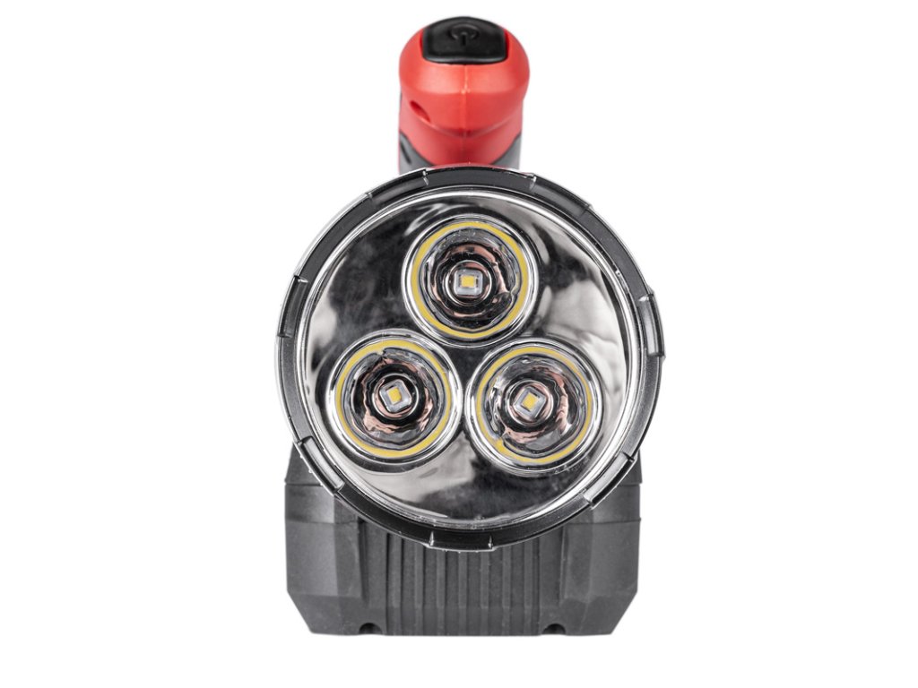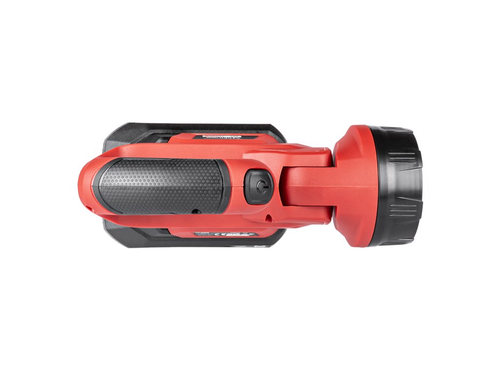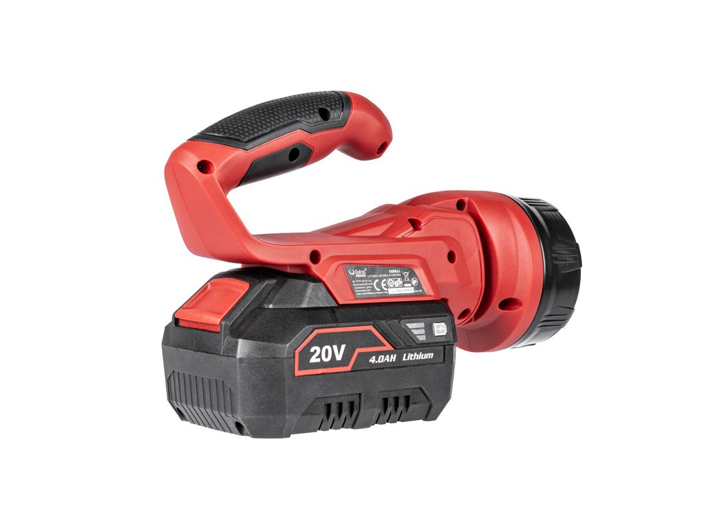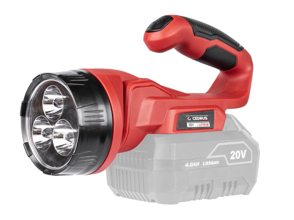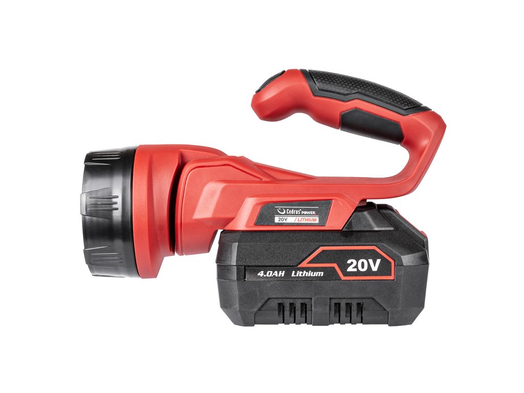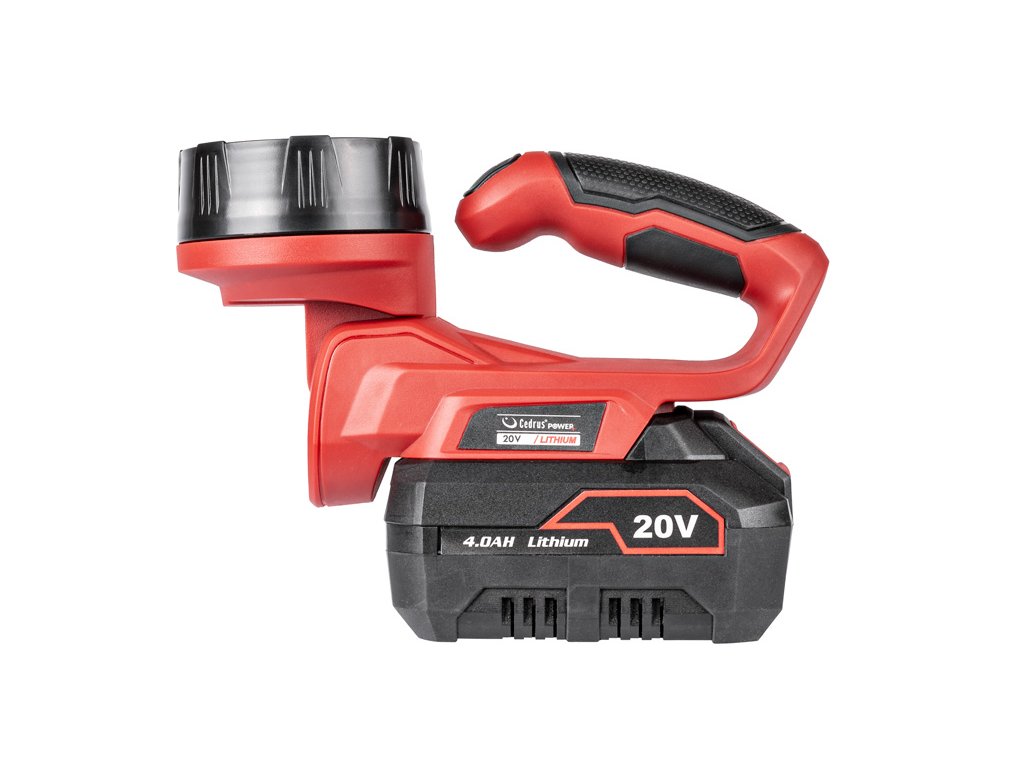 - Hlavice je nastavitelná v rozsahu 90° ve čtyřech krocích, což umožňuje přesné nasměrování světla. Integrovaný systém ochrany baterie automaticky vypíná zařízení při nízkém nabití, čímž chrání akumulátor. LED indikátor na těle svítilny zobrazuje úroveň nabití. Svítilna je kompatibilní s akumulátory CedLi-Ion 2Ah a 4Ah a odpovídajícími nabíječkami.