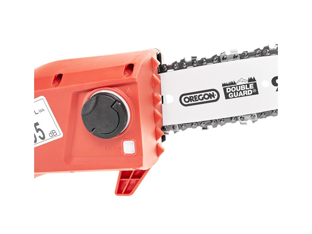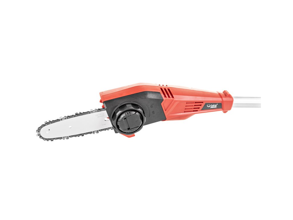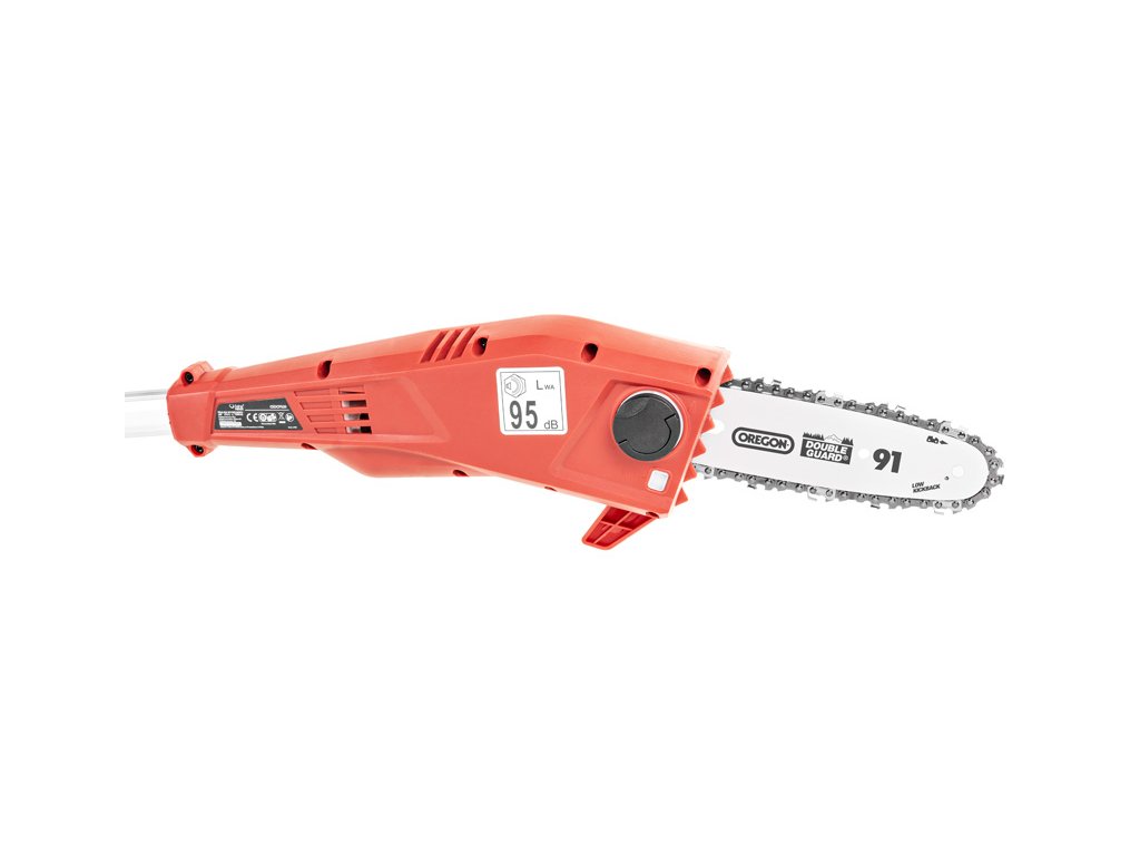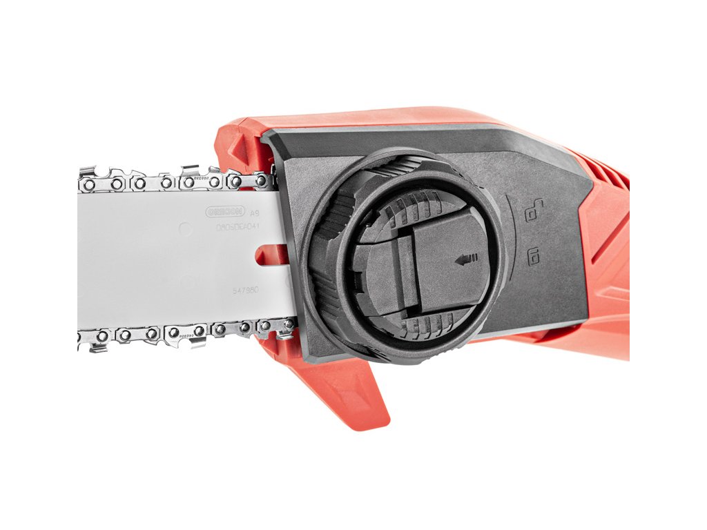 - Pilový systém pracuje s maximální rychlostí řetězu 8 m/s, což zajišťuje efektivní práci i při tvrdším dřevu. Nízkovibrační design s ergonomickým držadlem zvyšuje komfort obsluhy, a díky teleskopickému držadlu lze pilu snadno přizpůsobit na požadovanou délku.