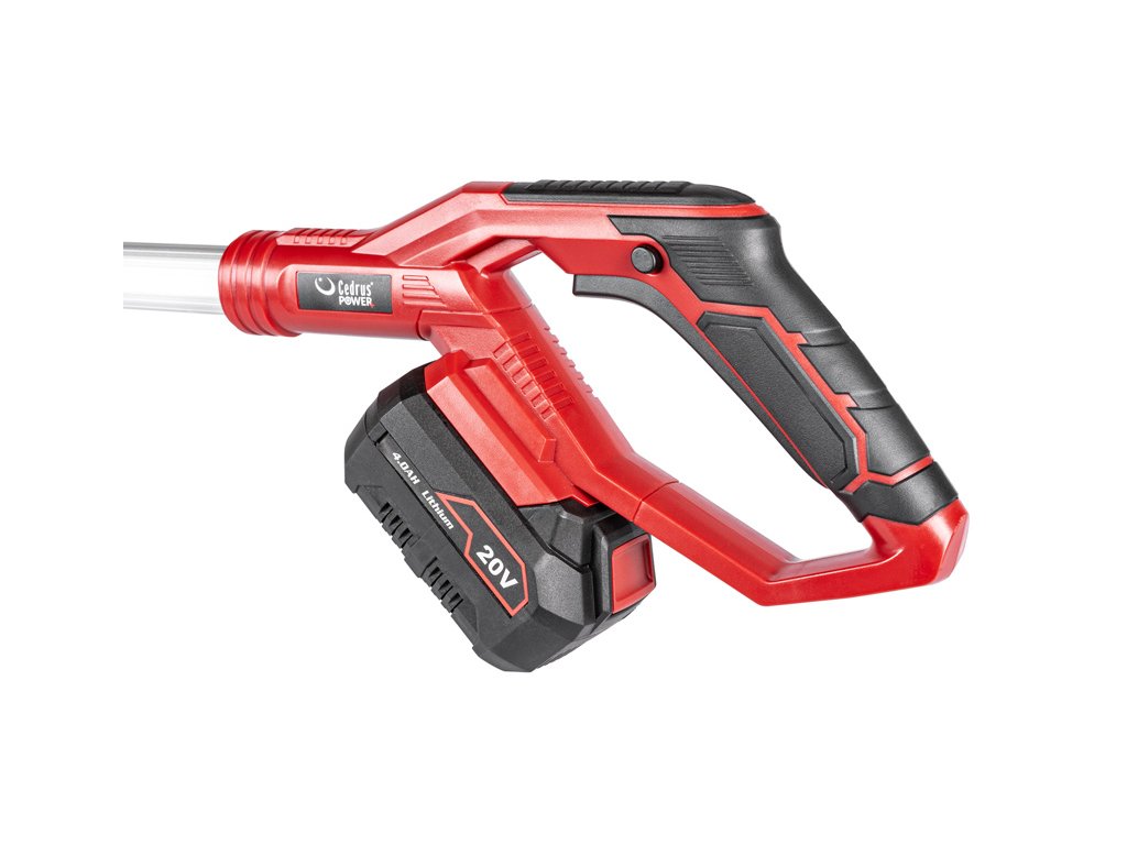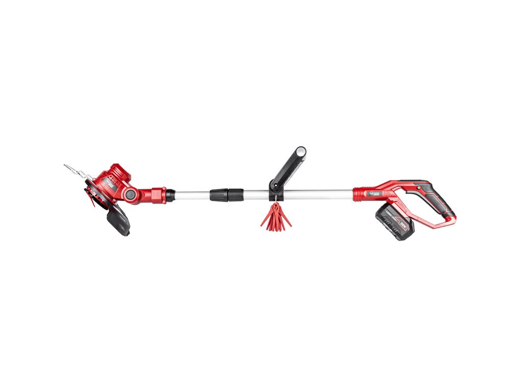 Akumulátorová strunová sekačka Cedrus CEDGT254LI je kompaktní a efektivní pomocník pro úpravu trávníku, zejména v těžko dostupných místech, kam se běžná sekačka nedostane. Díky nastavitelné délce stroje (1,1 – 1,4 m) a hlavě otočné o 90° umožňuje snadné a přesné sečení okrajů trávníku nebo úpravu kolem překážek.