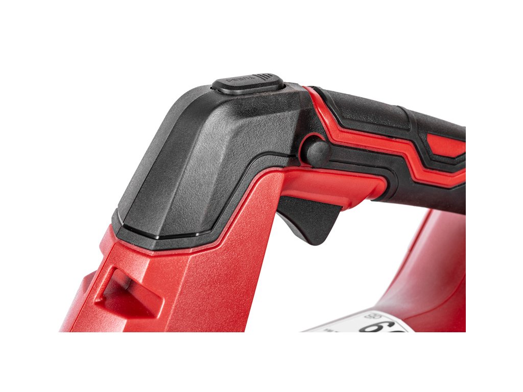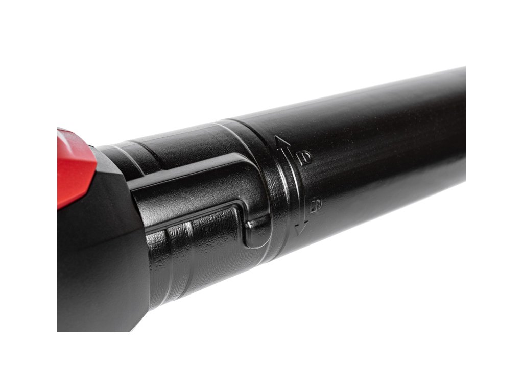 - Foukačka je vybavena elektronickou regulací otáček, funkcí TURBO pro krátkodobé zvýšení výkonu a také aretačním tlačítkem pro pohodlný provoz bez nutnosti neustálého držení spouště. Ergonomický design a nízká hmotnost pouze 2,5 kg umožňují snadné a pohodlné ovládání.
