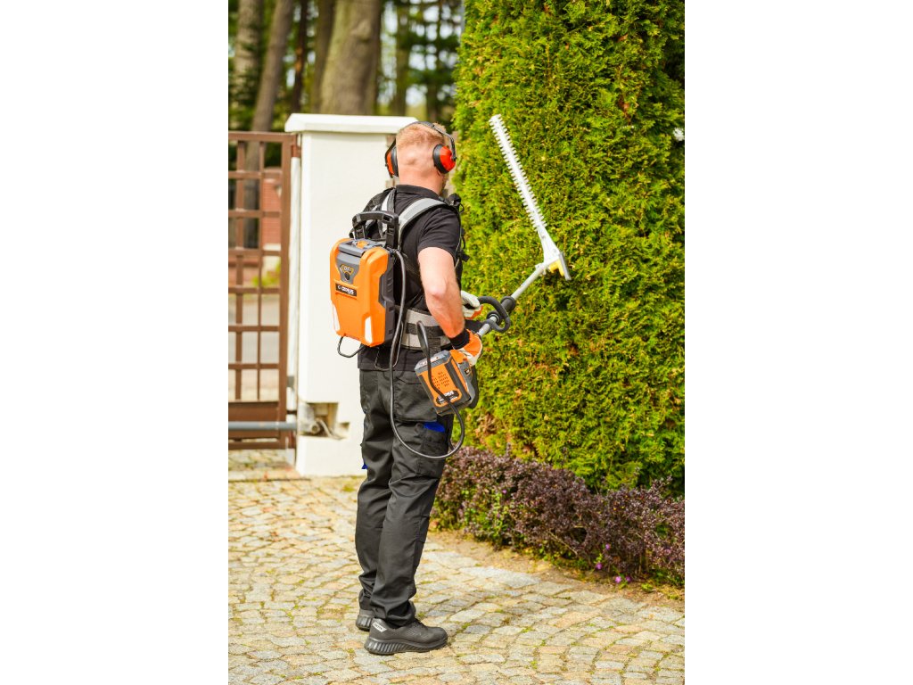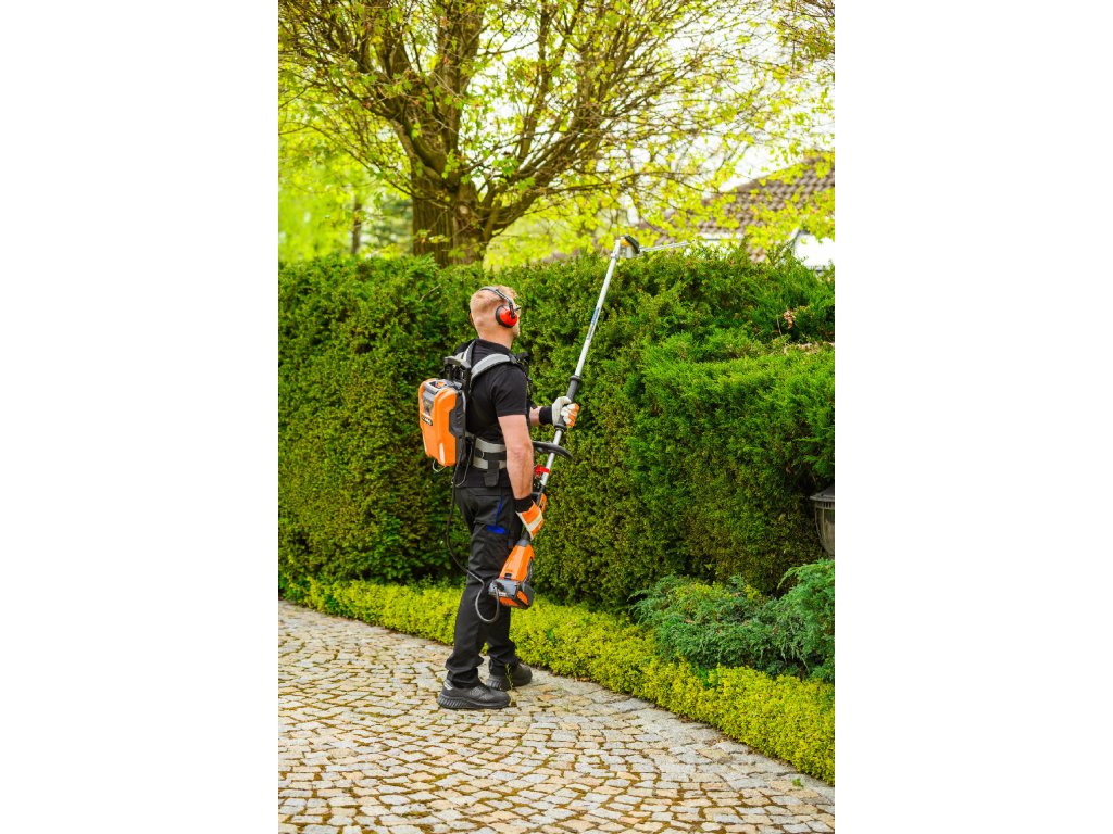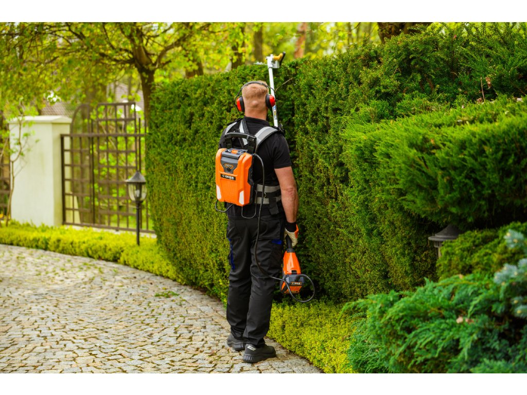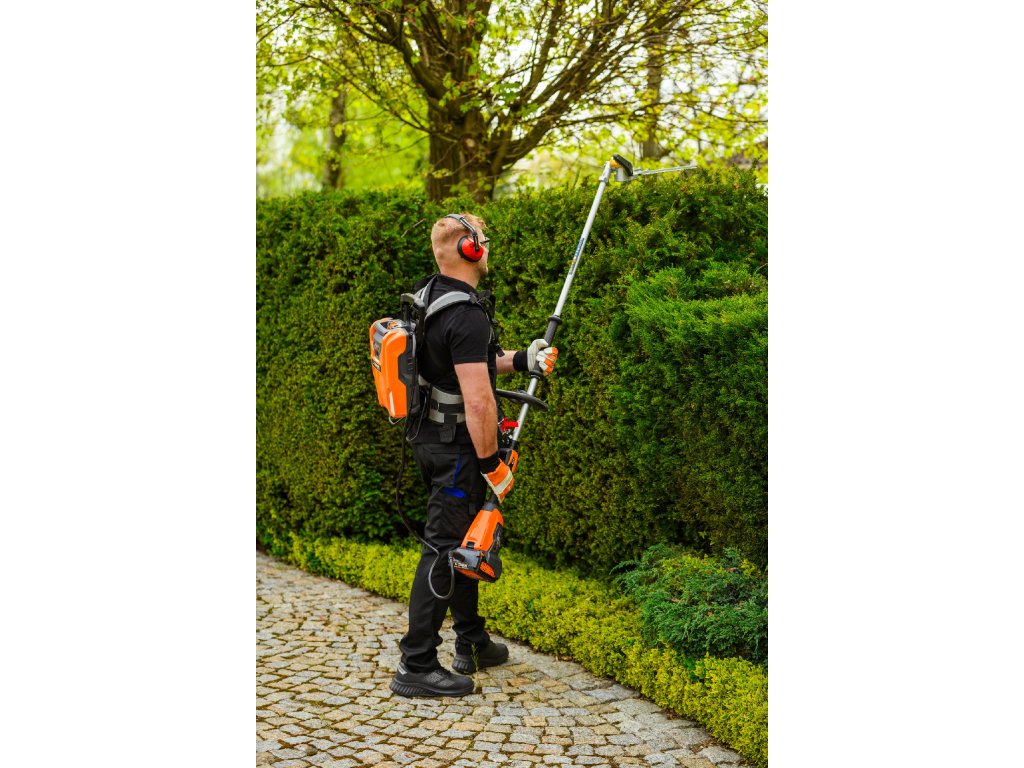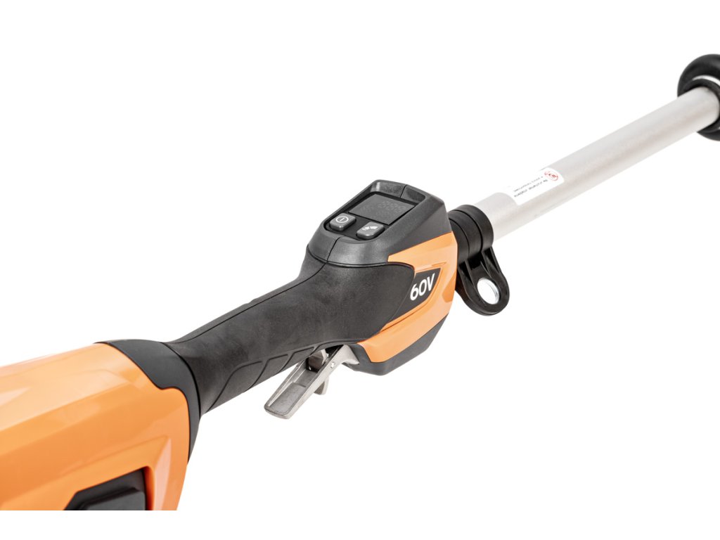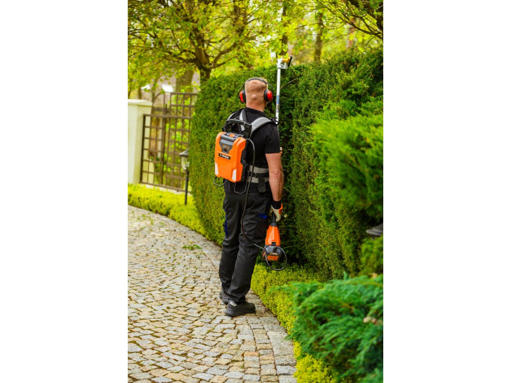 - Nůžky jsou vybaveny displejem, který informuje o aktuálním stavu zařízení. Díky třem rychlostem (2800 / 3200 / 3600 ot./min) lze přizpůsobit výkon konkrétní situaci. Voděodolnost IPX4 umožňuje práci i ve vlhčím počasí.