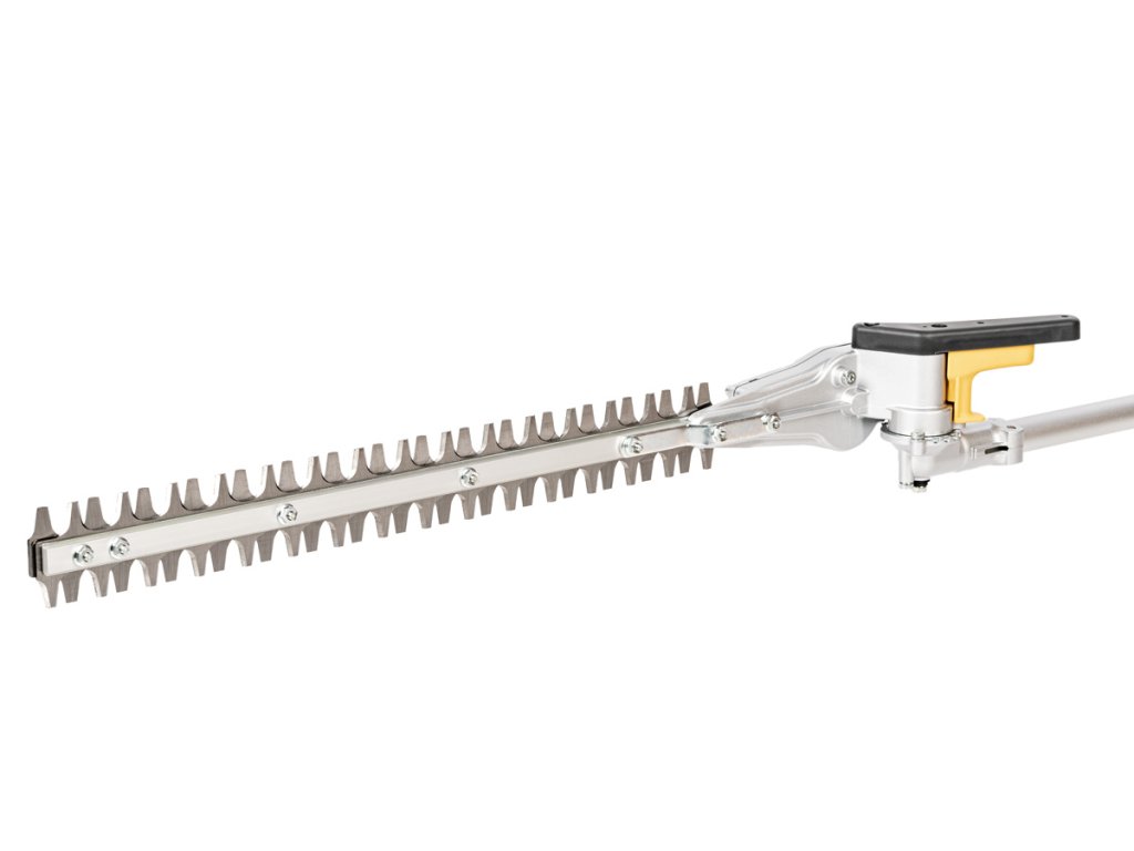 - Délka řezné lišty 525 mm a laserem broušené čepele umožňují hladké a přesné střihy. Otočná hlava s 11 polohami v rozsahu 180° poskytuje optimální úhel pro stříhání i obtížně dostupných částí keřů a živých plotů.