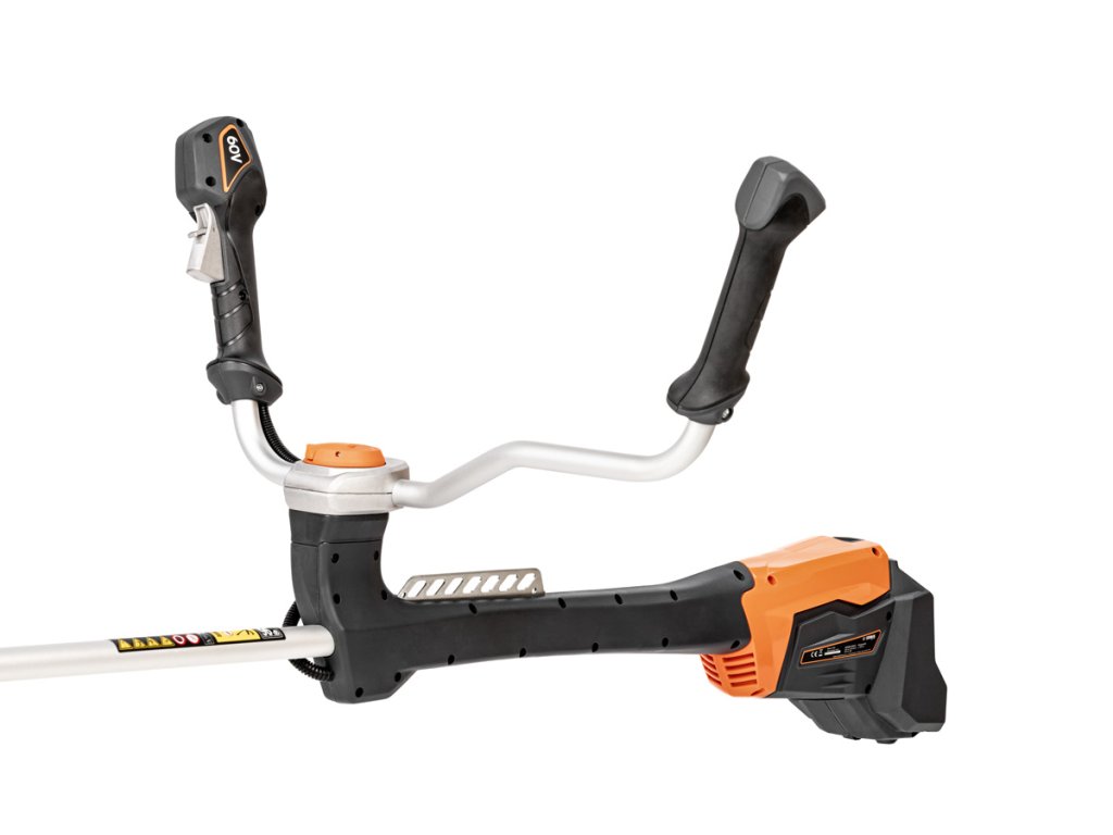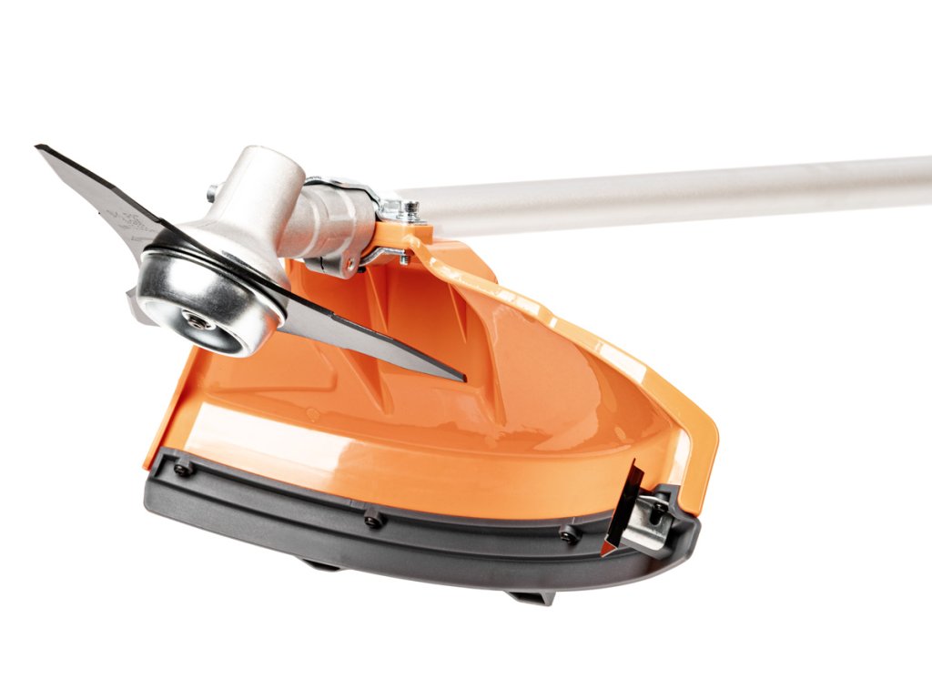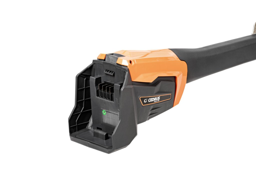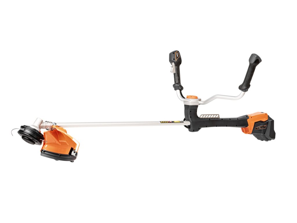- Křovinořez je vybaven systémem On-Board, tedy akumulátor se připojuje přímo na zařízení, což zaručuje jednoduchou manipulaci bez externích batohů. Možnost volby mezi strunovou hlavou (záběr 420 mm) a ocelovým kotoučem (258 mm) poskytuje maximální univerzálnost podle potřeby uživatele.