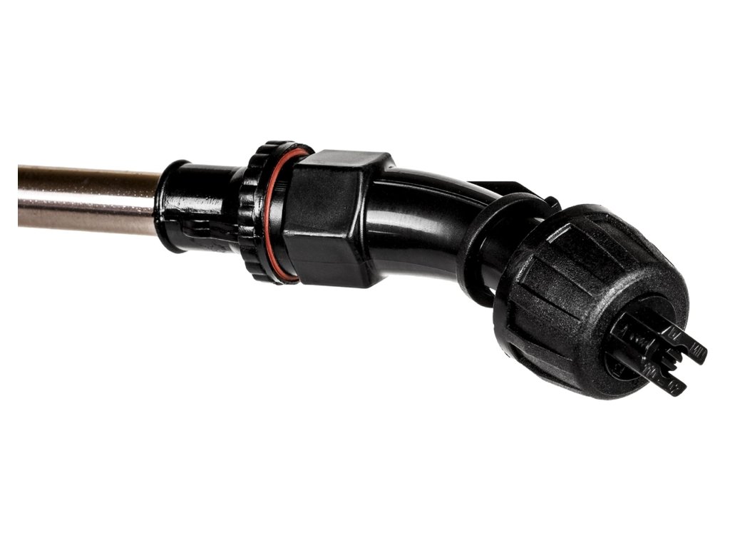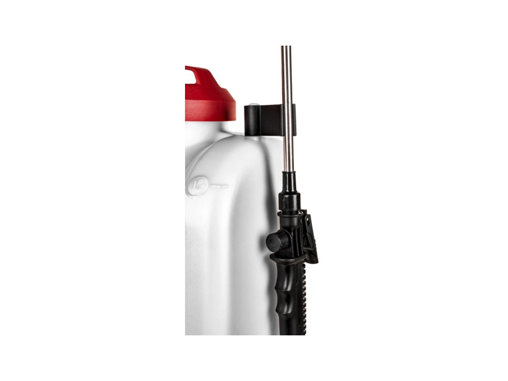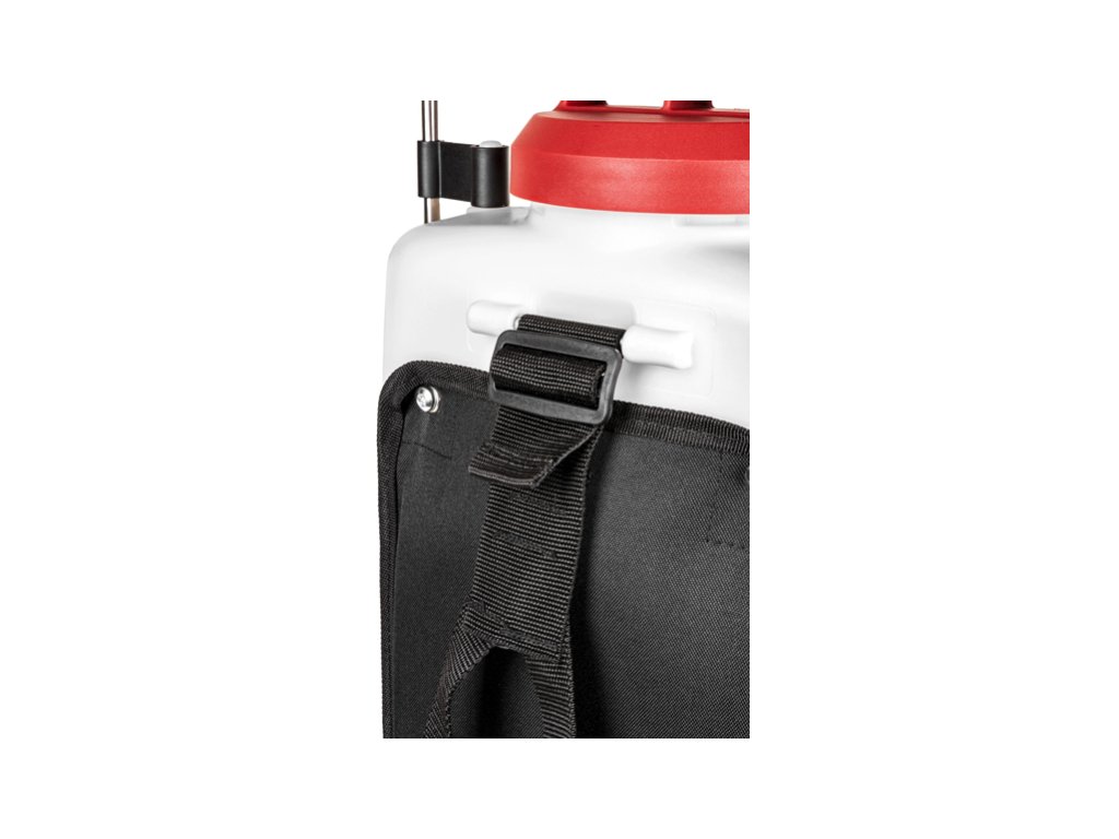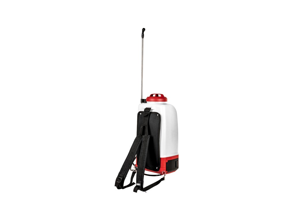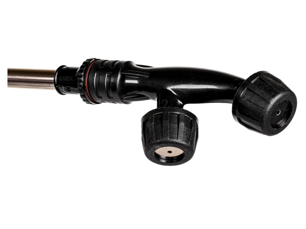 - Postřikovač má 15l nádrž, nerezovou 800mm dlouhou lancetu, tři vyměnitelné trysky, voděodolný spínač a široký otvor pro snadné plnění a čištění. Pracuje při maximálním tlaku 0,3 MPa a dosahuje průtoku až 1,3 litru za minutu.