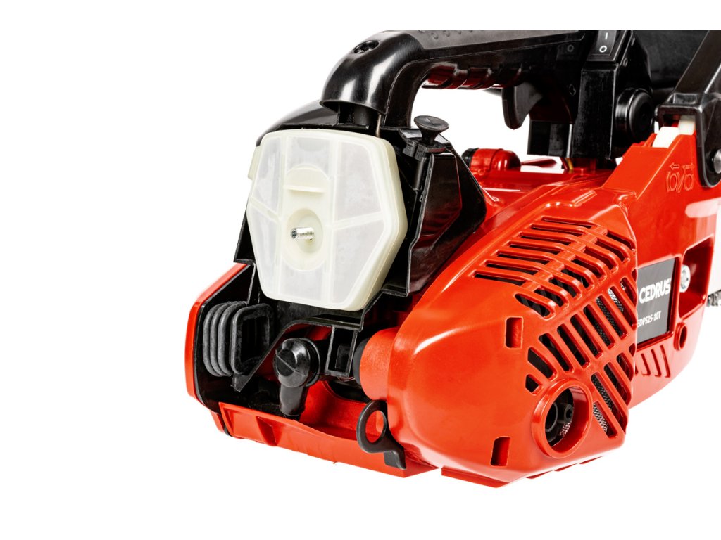 Benzínová řetězová pila Cedrus CEDPS25-10T je ideální volbou pro uživatele, kteří hledají kompaktní, ale výkonné zařízení pro domácí i poloprofesionální použití. Je vybavena dvoutaktním motorem o objemu 25,4 cm³, který poskytuje výkon 0,9 kW. Tato pila je osazena 10" (25 cm) vodicí lištou Oregon a řetězem Oregon 3/8" 0,050", což zajišťuje precizní a efektivní řezání.