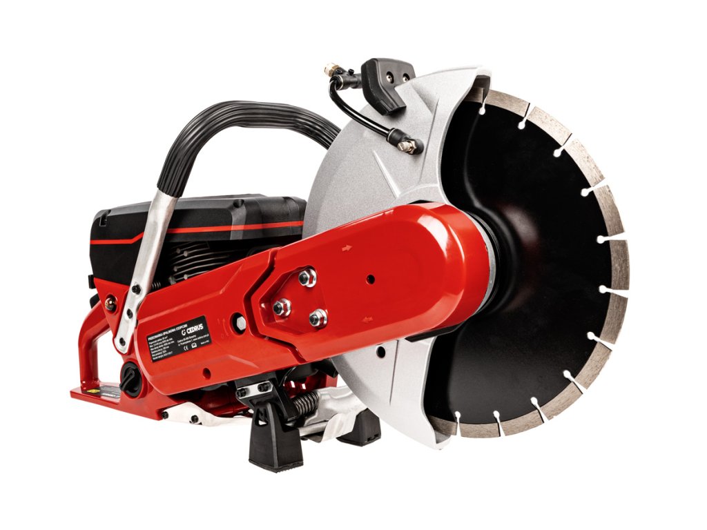 - Řezačka nabízí ergonomický design s pevnou konstrukcí a pohodlnými rukojeťmi pro snadnou manipulaci. Automatický dekompresní ventil a palivová pumpa zajišťují snadné startování. Díky vodnímu chlazení lze snížit prašnost a prodloužit životnost kotouče.