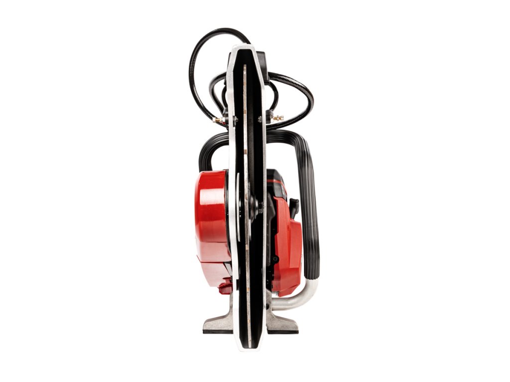 - Zařízení je vybaveno řezacím kotoučem o průměru 400 mm, který umožňuje maximální hloubku řezu až 150 mm. Kromě toho dosahuje otáček až 9350 ot./min, čímž zajišťuje efektivní a rychlé řezání.