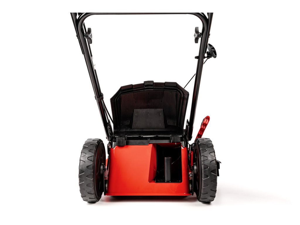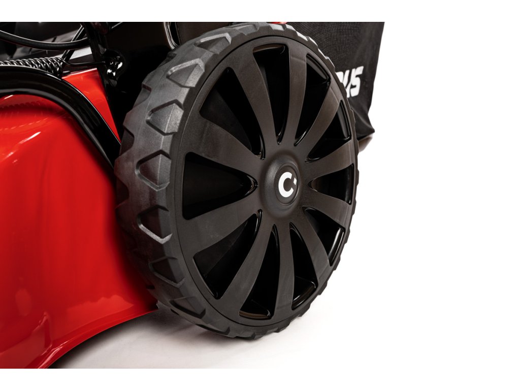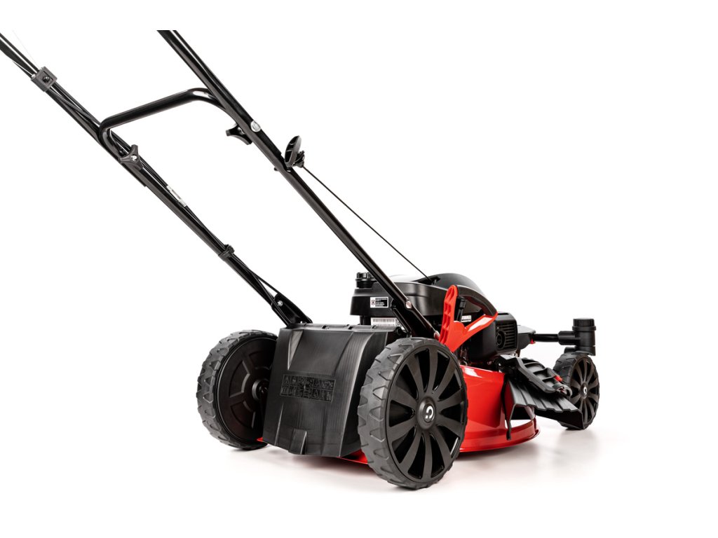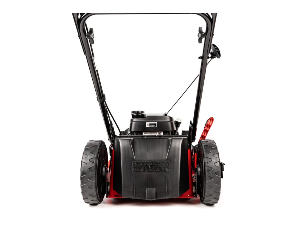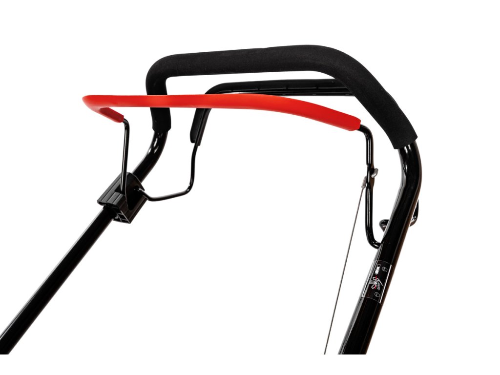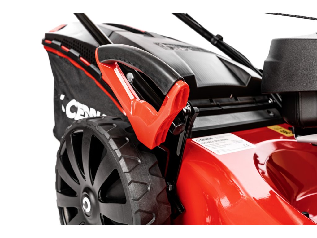 - Tento model nabízí 4 funkce sečení – boční výhoz, sběr do koše, mulčování a pohon. Výšku sečení lze nastavit v 6 úrovních (25–75 mm), což umožňuje přizpůsobit sekání konkrétním podmínkám trávníku. Velká zadní kola (28 cm) a přední otočná kola (20 cm) zajišťují stabilitu a snadnou ovladatelnost i na nerovném terénu.