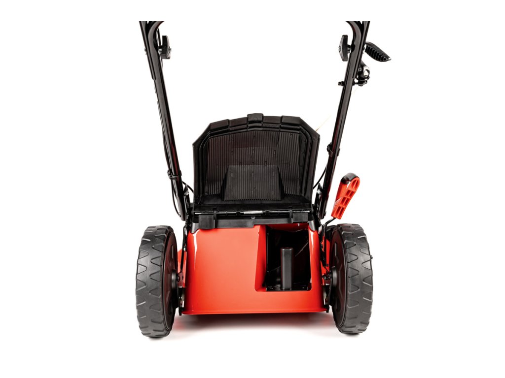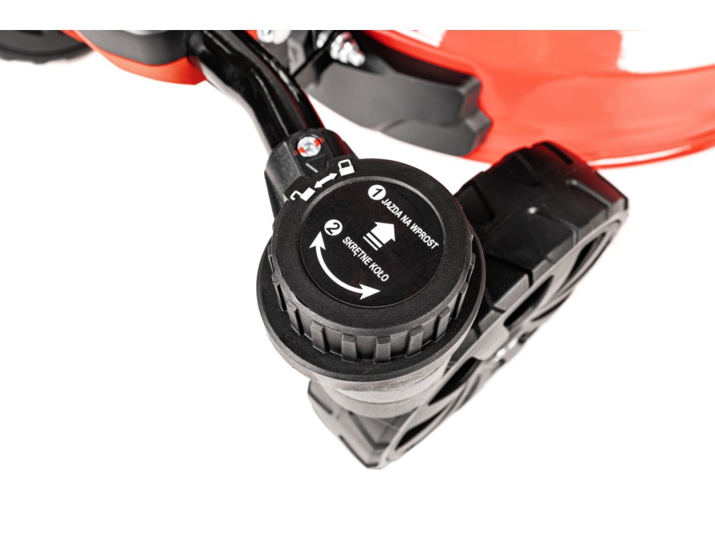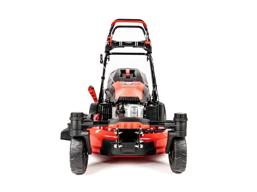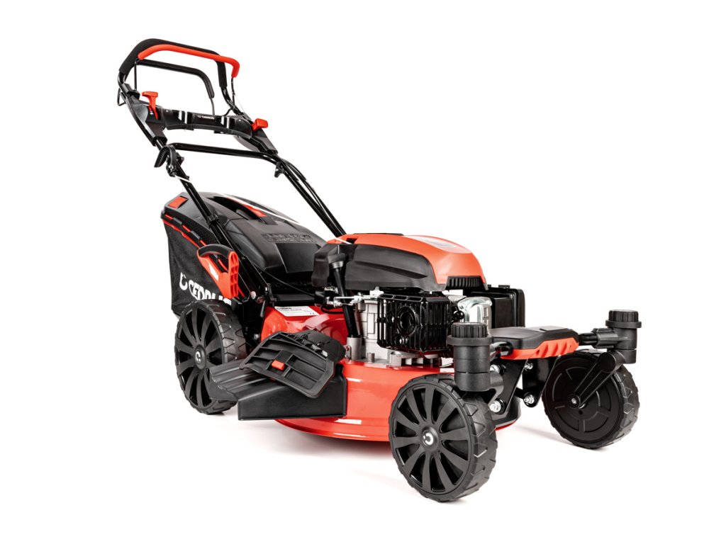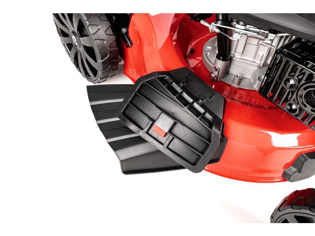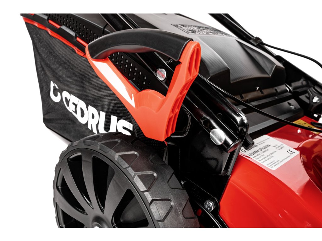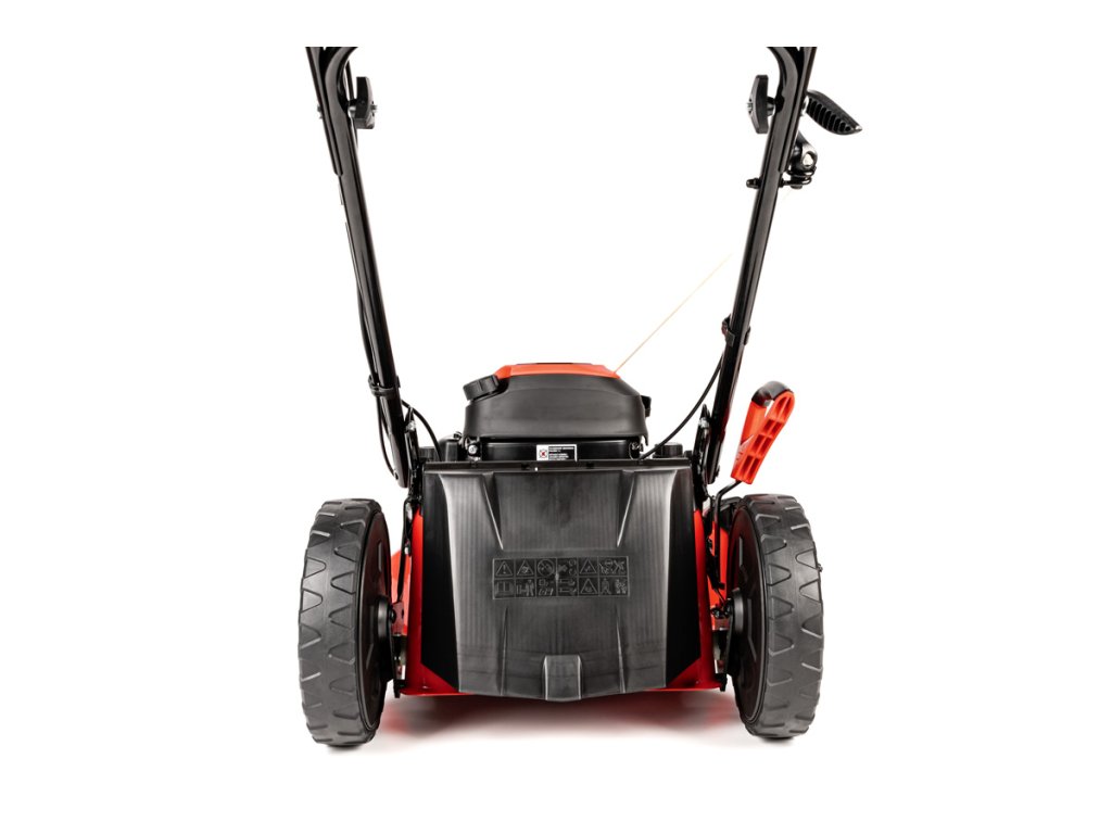 - Díky velkým zadním kolům (28 cm) a předním otočným kolům (20 cm) je manipulace extrémně snadná i na nerovném povrchu. Model je také vybaven přípojkou na hadici pro snadné čištění, což usnadňuje údržbu po sekání.