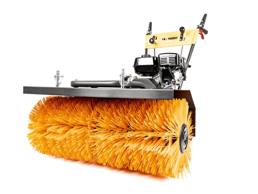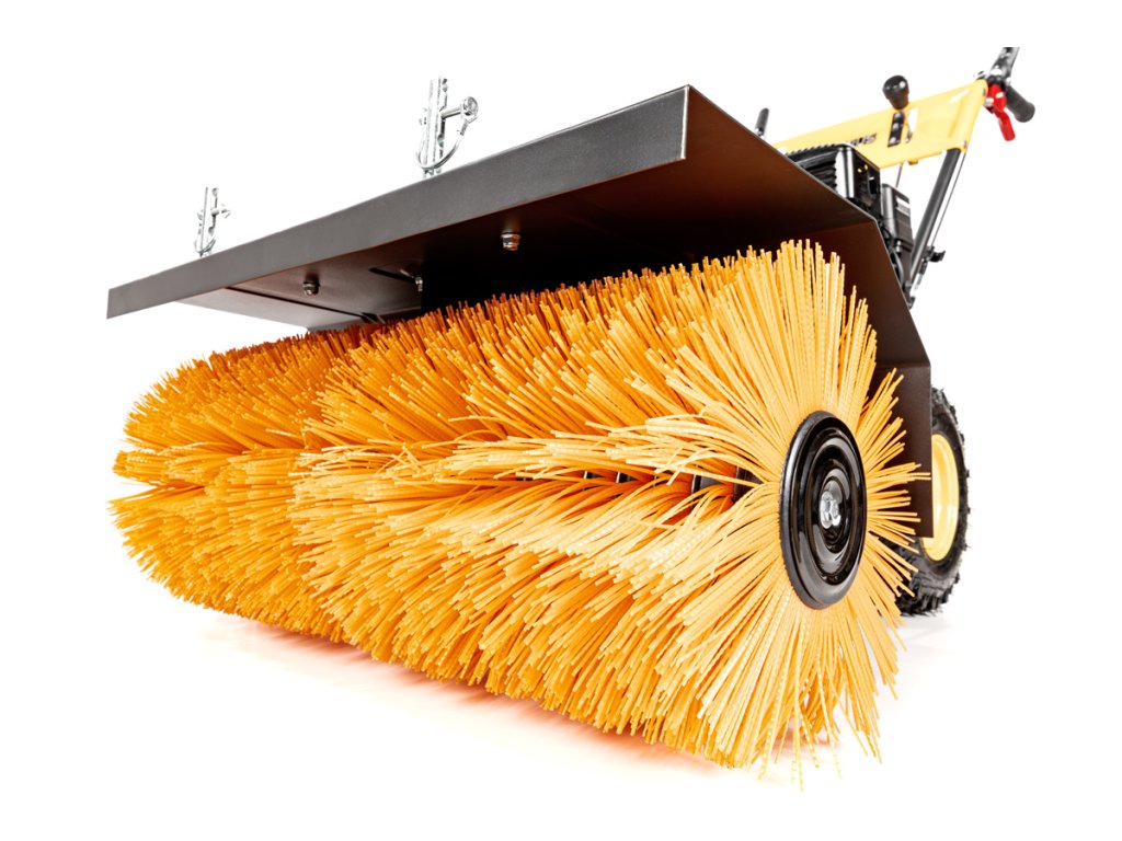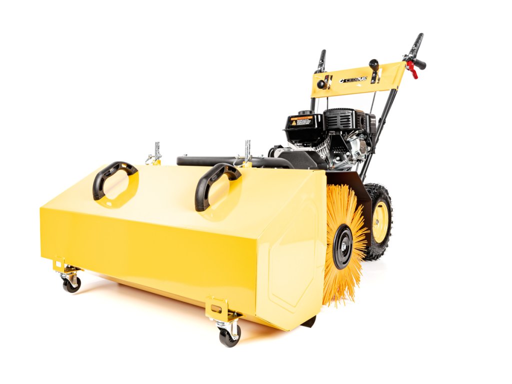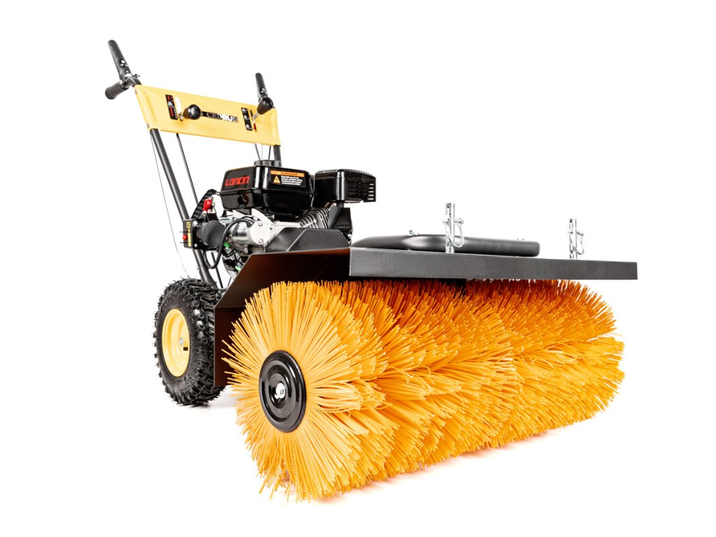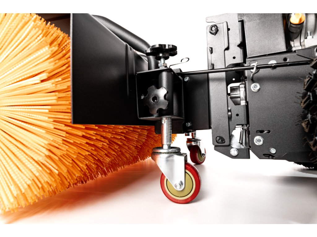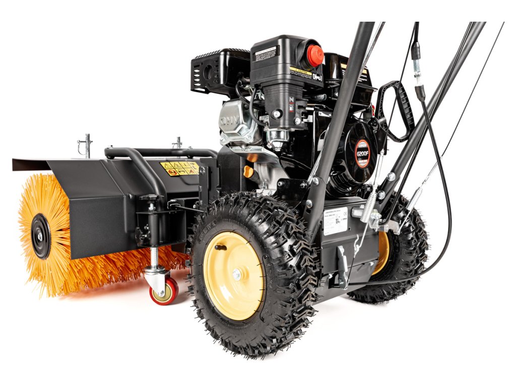 - Kromě elektrického startování (230 V) je vybaven nastavitelným úhlem zametání s možností otočení každých 15° z pozice operátora. Součástí balení je sněhový pluh a sběrná nádoba na nečistoty.