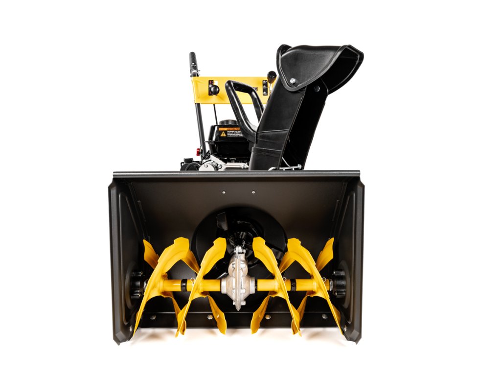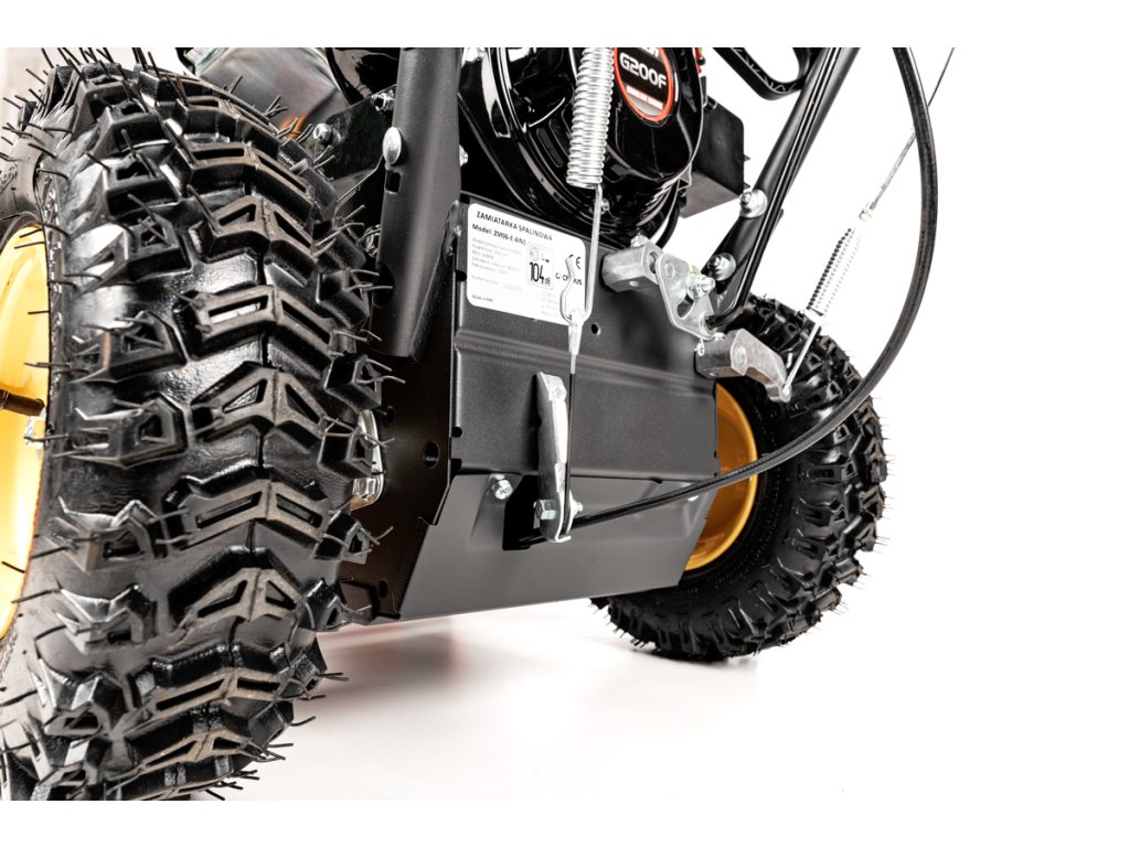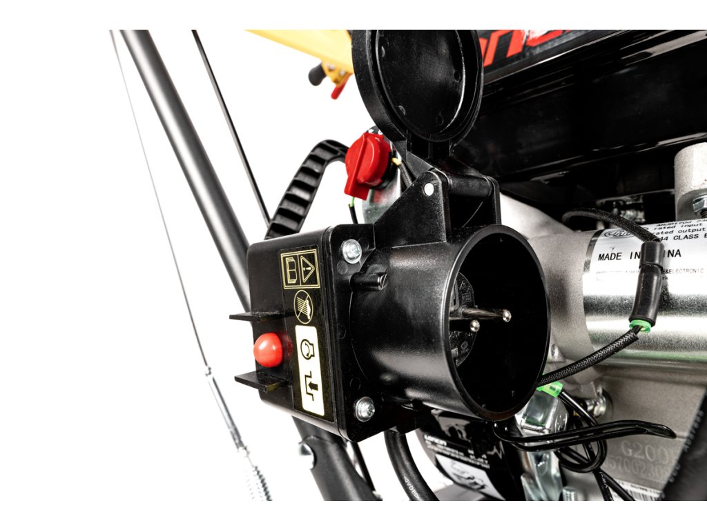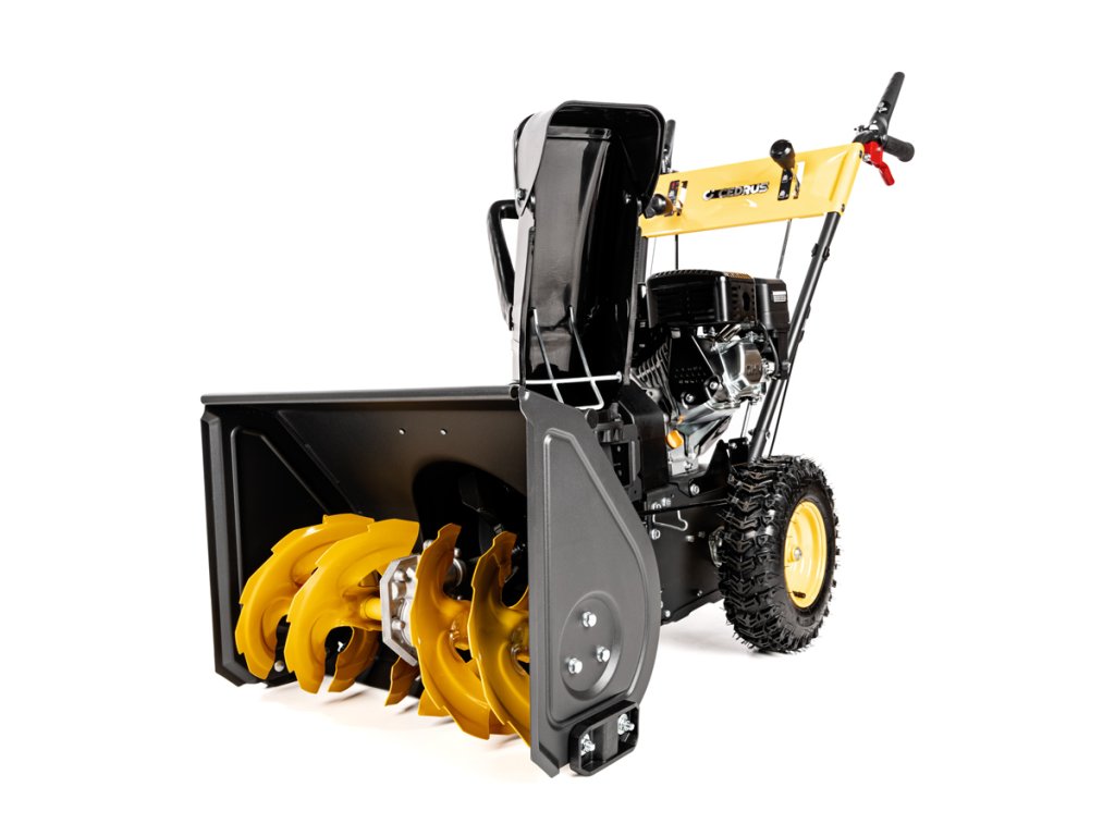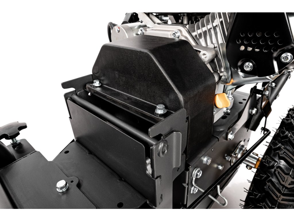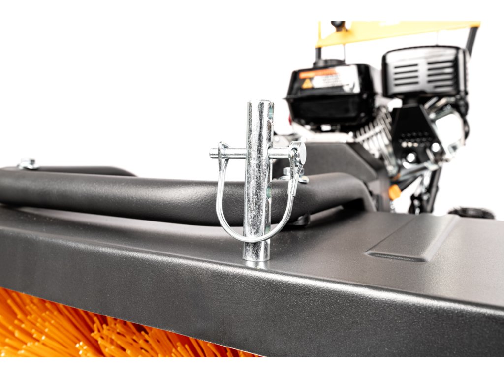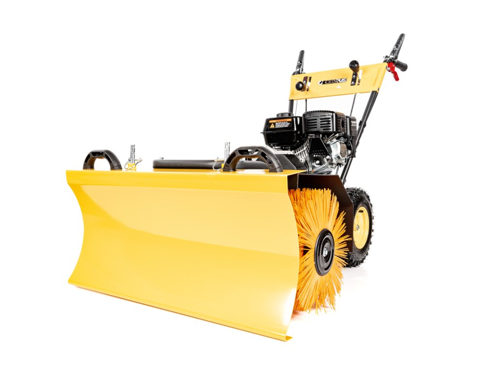 - Kromě elektrického startování (230 V) je vybaven nastavitelným úhlem zametání s možností otočení každých 15° z pozice operátora. Součástí balení je sněhový pluh a sběrná nádoba na nečistoty.