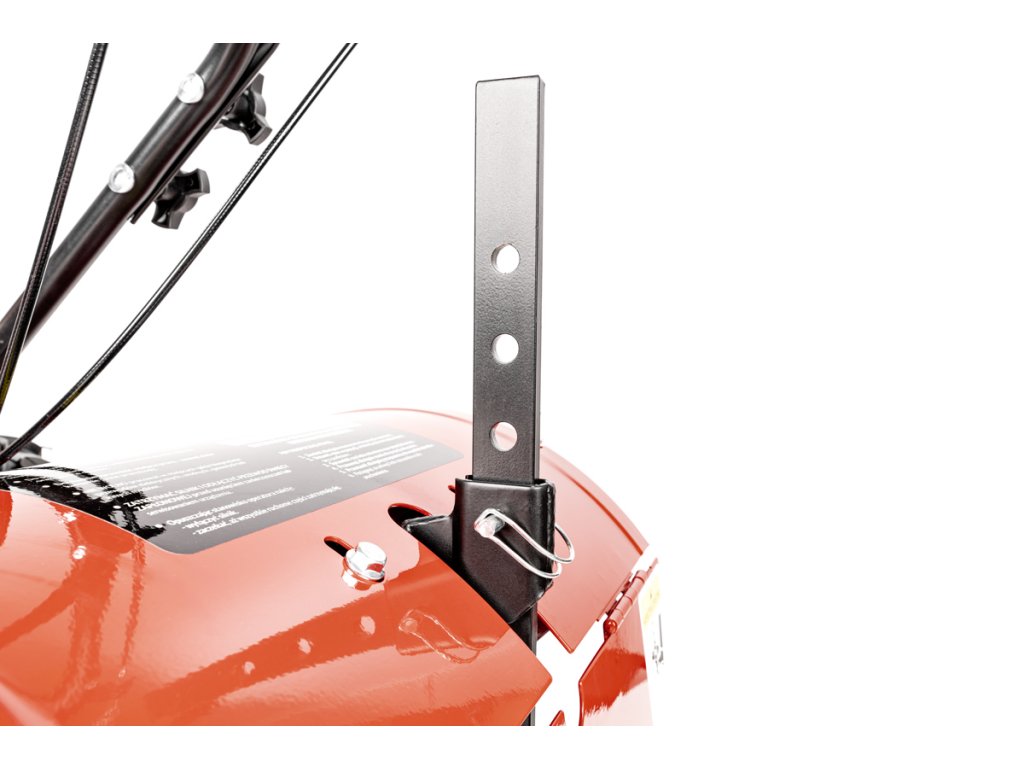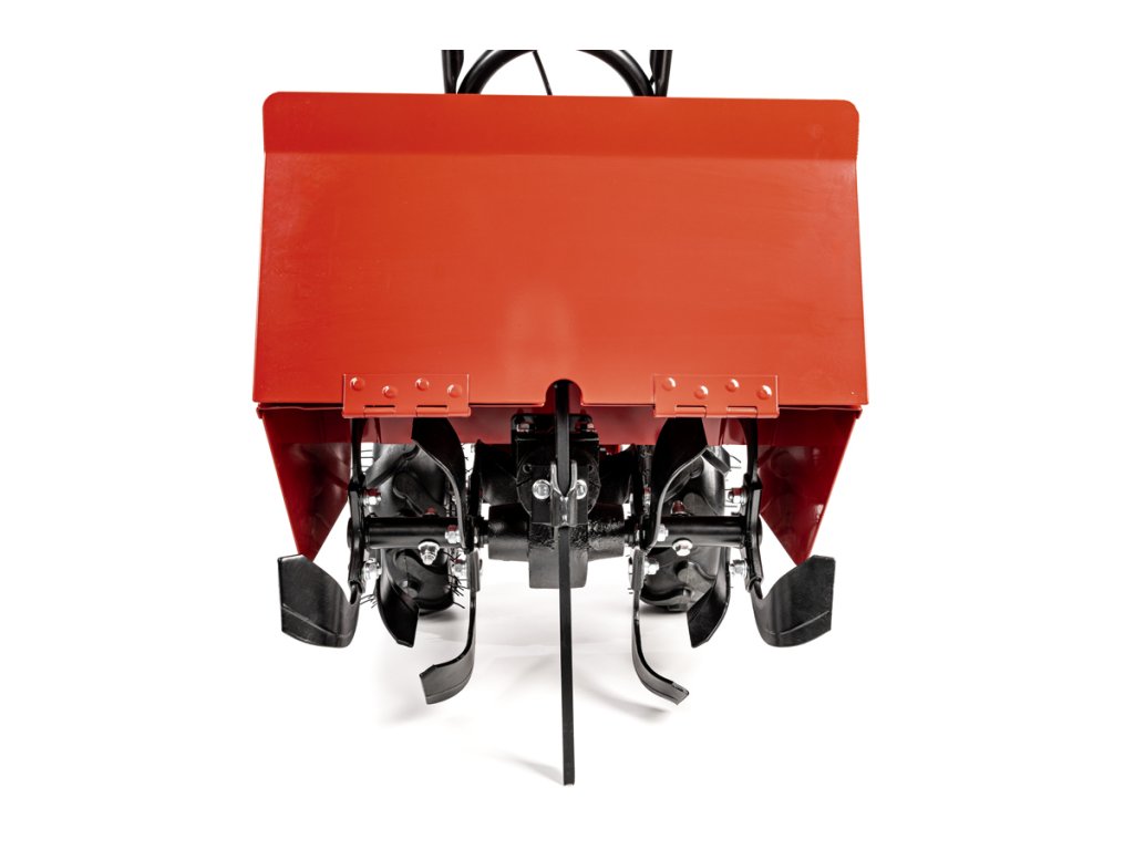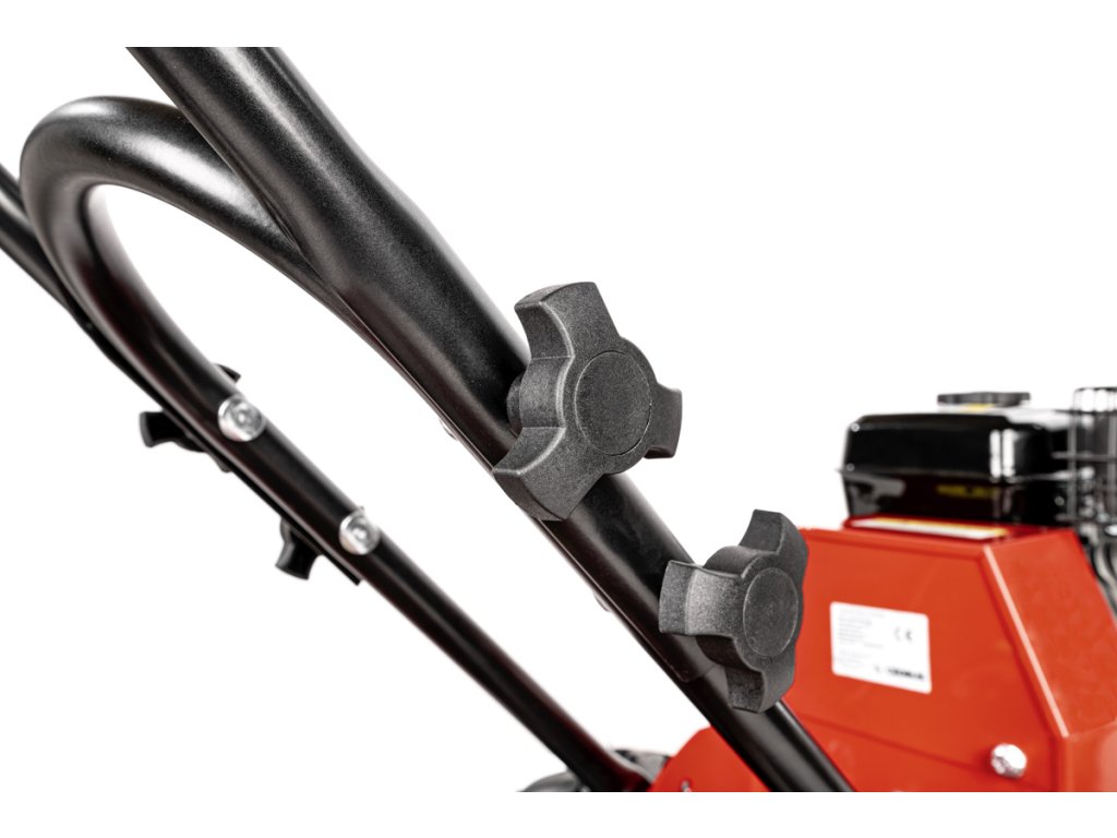 - Díky velkým 13palcovým kolům je stroj stabilní a dobře ovladatelný i na nerovném terénu. Kultivátor má robustní konstrukci s nízkým těžištěm, což zvyšuje jeho stabilitu během práce.