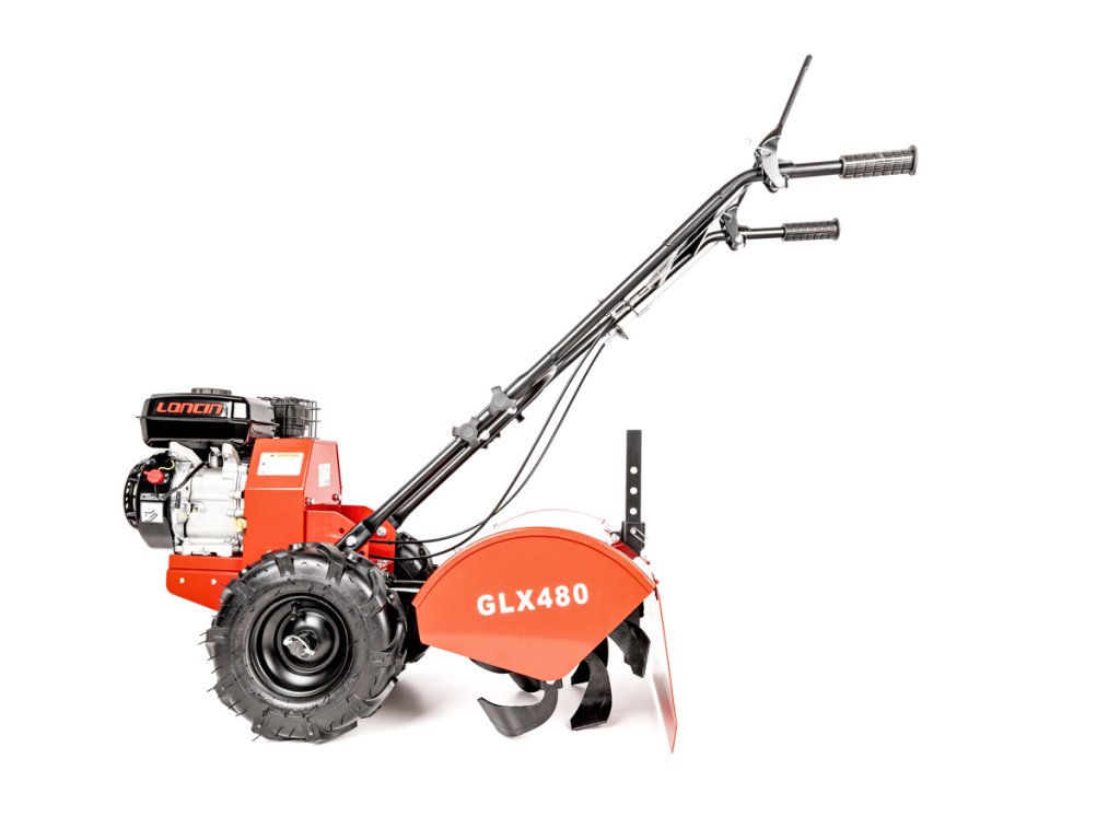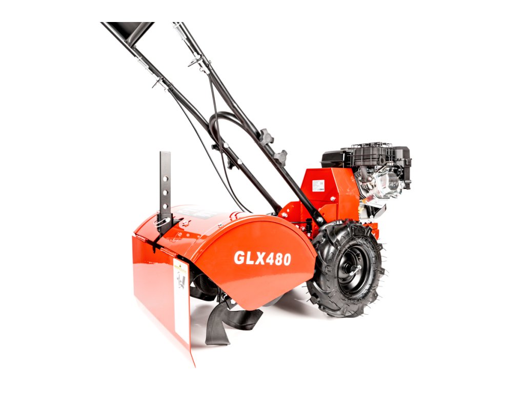 - Kultivátor disponuje dvourychlostní převodovkou (1 rychlost vpřed a zpátečka), což usnadňuje manévrování. Model GLX480F se odlišuje tím, že nože rotují ve směru jízdy, což zajišťuje lepší zpracování půdy a snadnější ovládání.