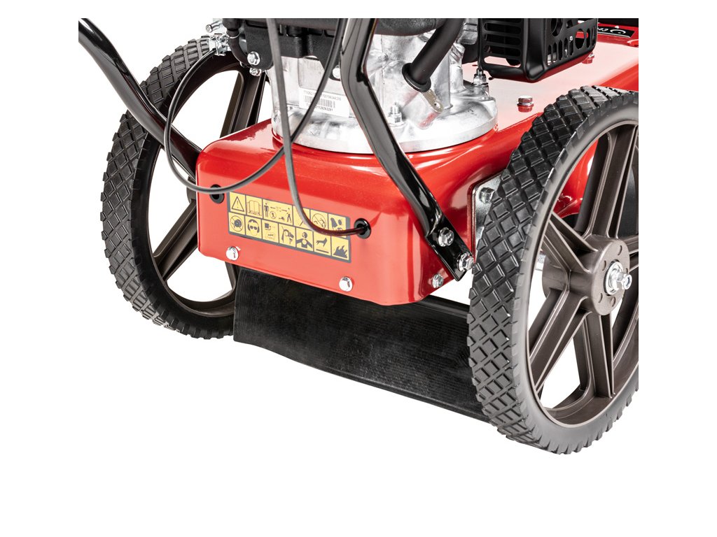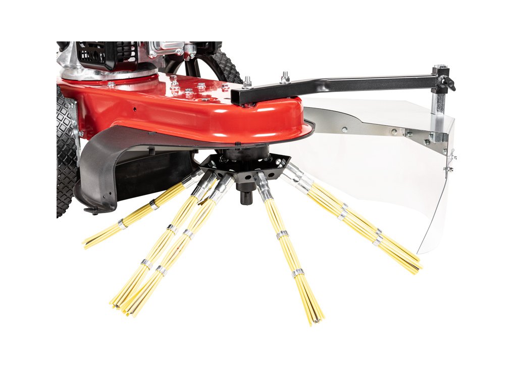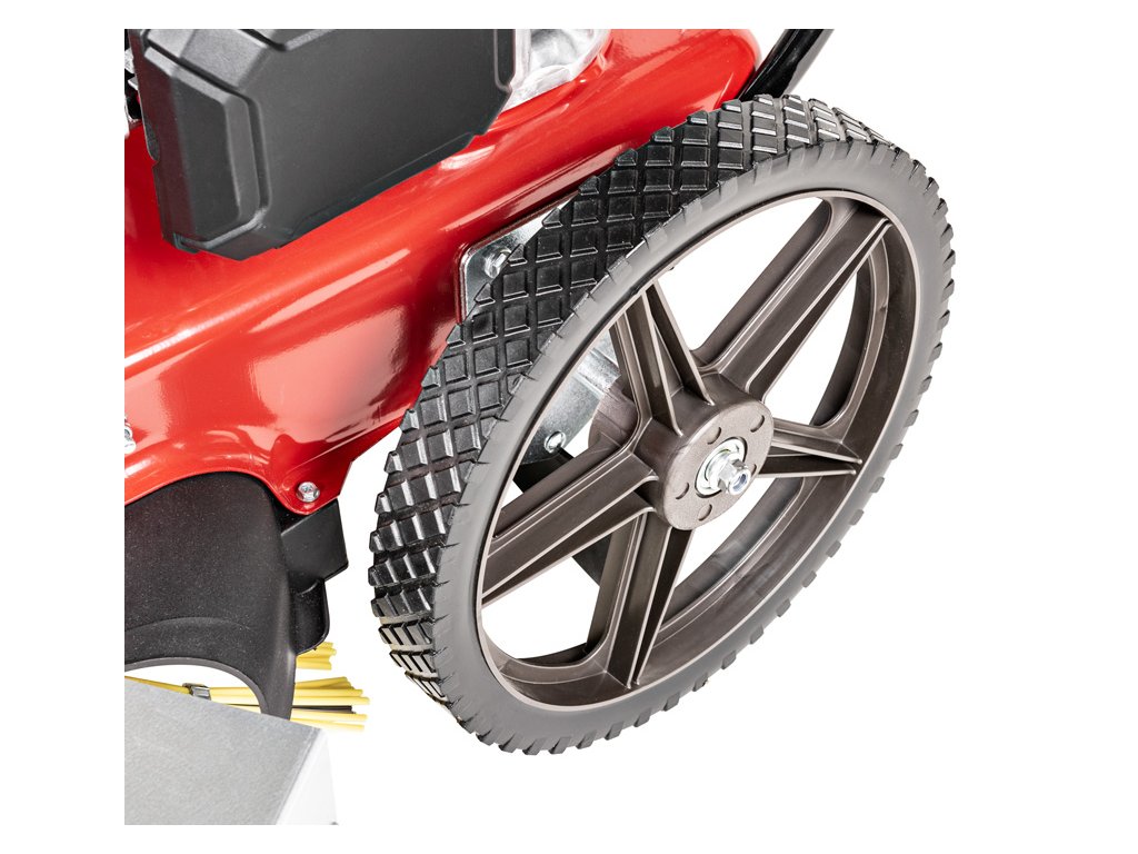 - Zařízení je poháněno spolehlivým motorem Loncin LC1P65FE-2 o výkonu 2,75 kW (166 cm³), který zajišťuje plynulý provoz a vysoký výkon kartáčů při 500 otáčkách za minutu. Velká 14" ložisková kola usnadňují manipulaci a zajišťují stabilní jízdu i na nerovném povrchu.