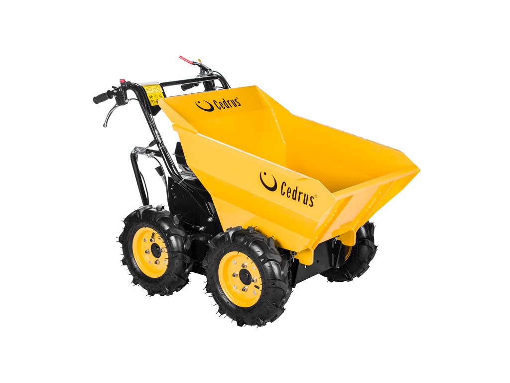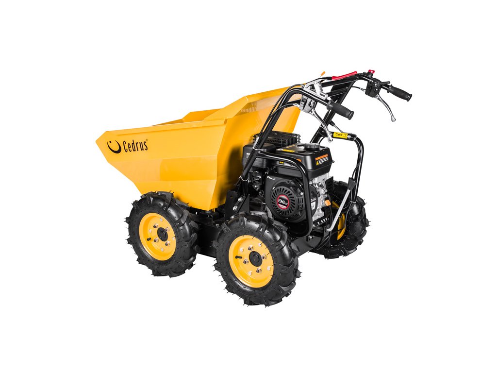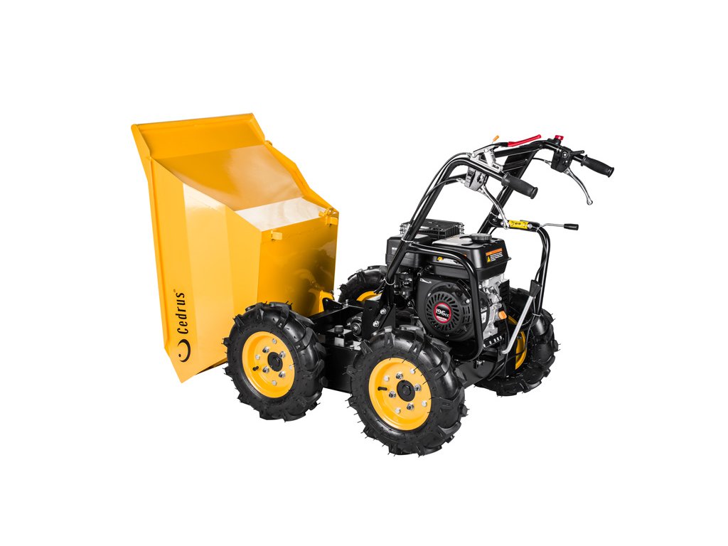 Benzínový transportér Cedrus CEDTR300 je univerzální dopravní zařízení, které je ideální pro přepravu materiálu na staveništích, farmách nebo v zahradnictví. Díky výkonnému motoru Loncin G200F s výkonem 4,1 kW zvládne transport těžkých nákladů až do 400 kg.