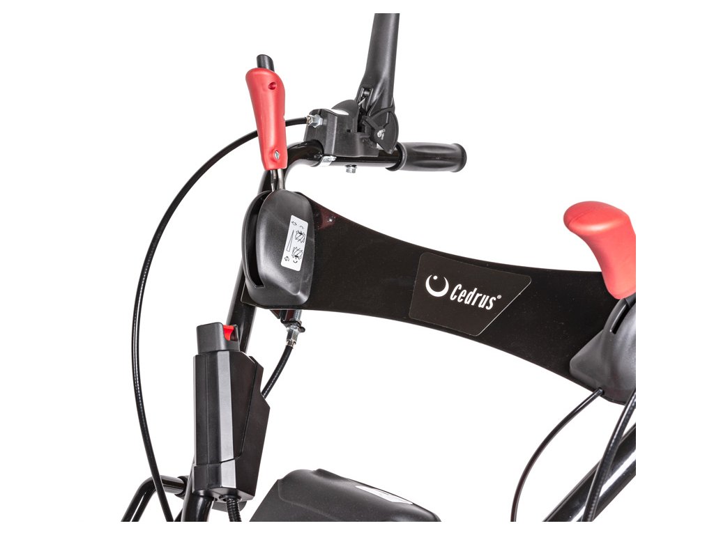 - Díky třem rychlostem vpřed a jednomu zpětnému chodu je zametací fréza Cedrus snadno ovladatelná a přizpůsobitelná terénu. Pogumovaná kola a robustní konstrukce zajišťují vysokou stabilitu a odolnost i při dlouhodobém používání. Součástí volitelného příslušenství je sněhová radlice a sběrný koš, které rozšiřují využití stroje.