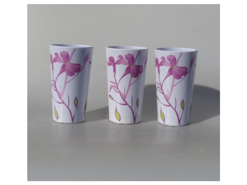 Dekorační sada – 3 plastové kelímky s květinovým motivem