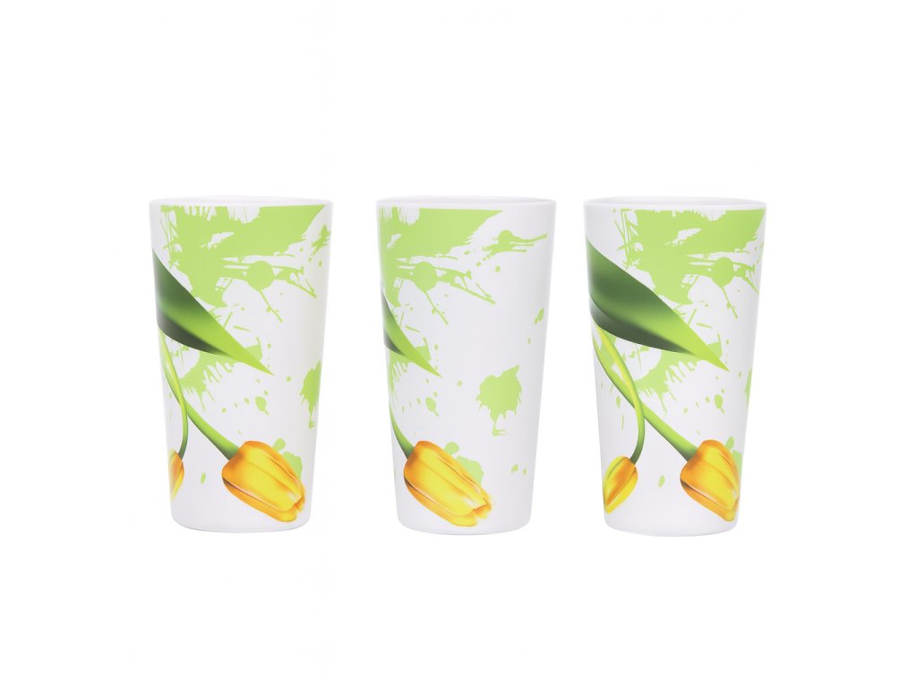 Dekorační sada – 3 plastové kelímky s motivem tulipánů