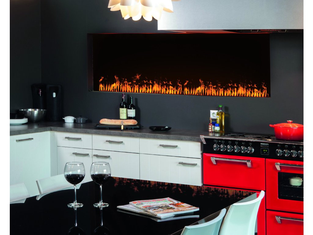 Elektrický krb s technologií OPTIMYST. Reálný dým tvořený vodní párou věrně imituje hořící oheň. Patentovaný 3D efekt zaručen. Určeno k zabudování do stěn, nábytku apod.