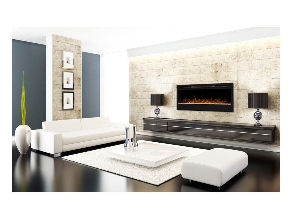 Stylový moderní široký elektrický krb závěsný s možností zabudování do zdi o výkonu 1,2 kW. Spotřeba energie je pro světelný efekt pouze 300 W.