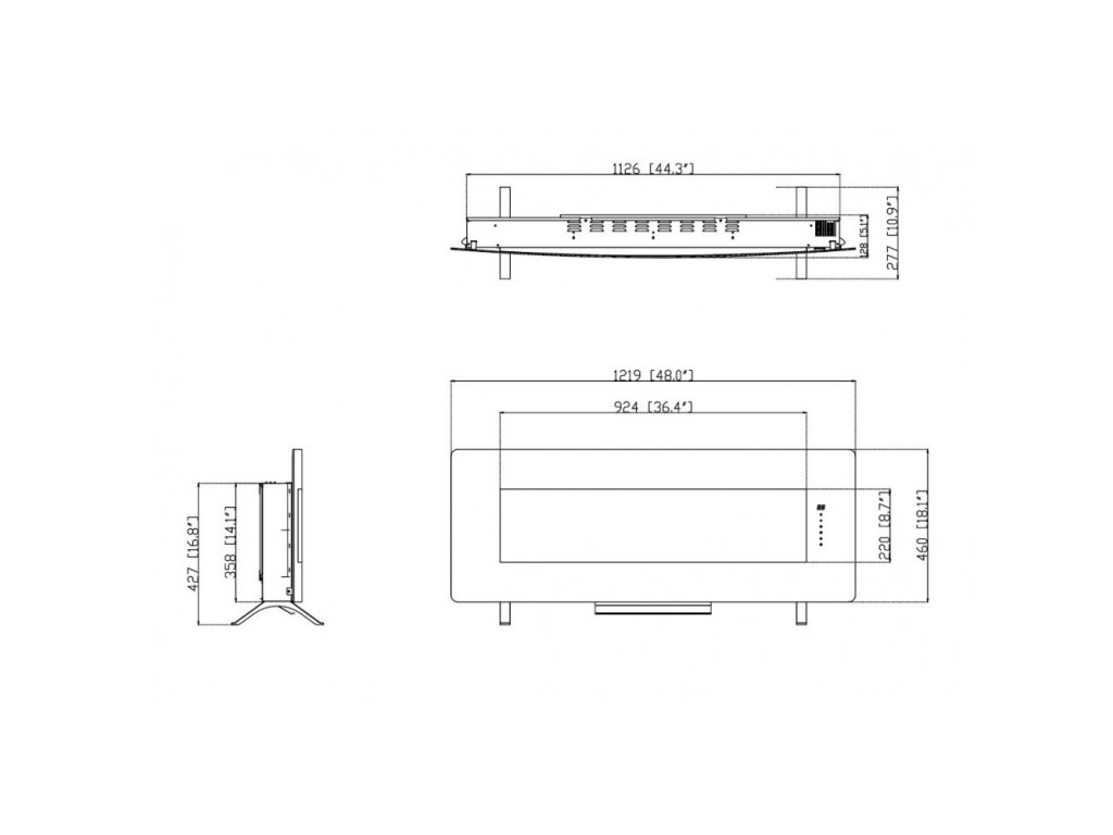 Rozměr krbu v cm: šířka 121,9 x výška 46 x hloubka 12,8
