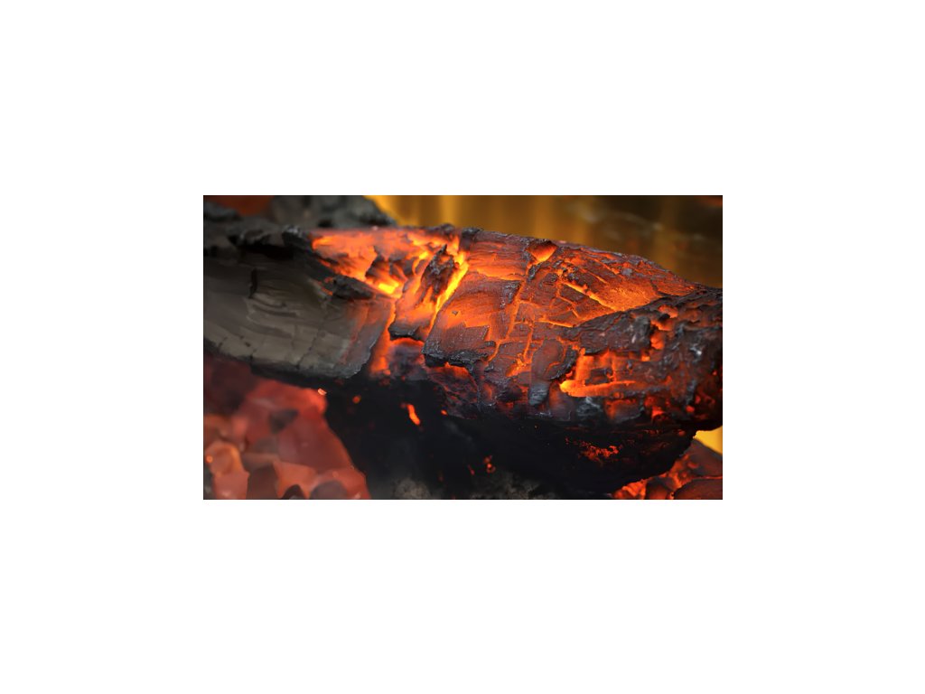 Lůžko plamene: | Osvětlená polena a tříštěné sklo |