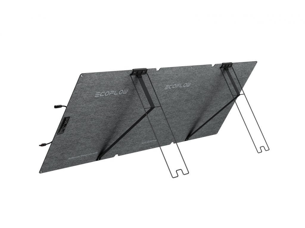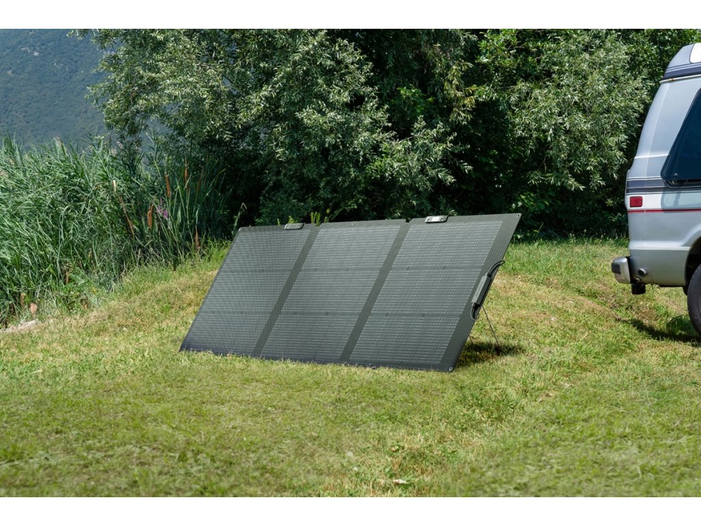 - Panel nabízí až 25% účinnost přeměny solární energie, vestavěný ukazatel úhlu dopadu slunečního světla a integrovaný stojan s nastavením sklonu 30–60°, což zajišťuje maximální efektivitu i během proměnlivých podmínek. Díky nízké hmotnosti a přepravnímu pouzdru je snadno přenosný a skladný.