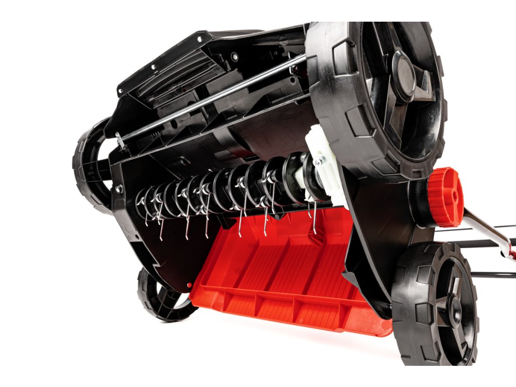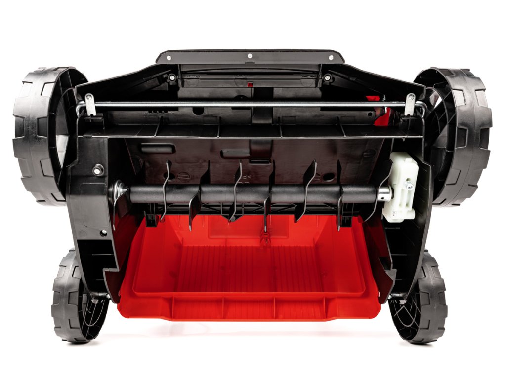 - Díky sběrnému koši o objemu 45 litrů je minimalizována nutnost častého vyprazdňování. Konstrukce vertikutátoru umožňuje výměnu nožového válce za pružinový aerátor, což je ideální pro jemnější provzdušnění trávníku. Ergonomický design a hmotnost 12,8 kg zajišťují snadnou manipulaci a transport. Tento model je skvělou volbou pro menší a středně velké zahrady.