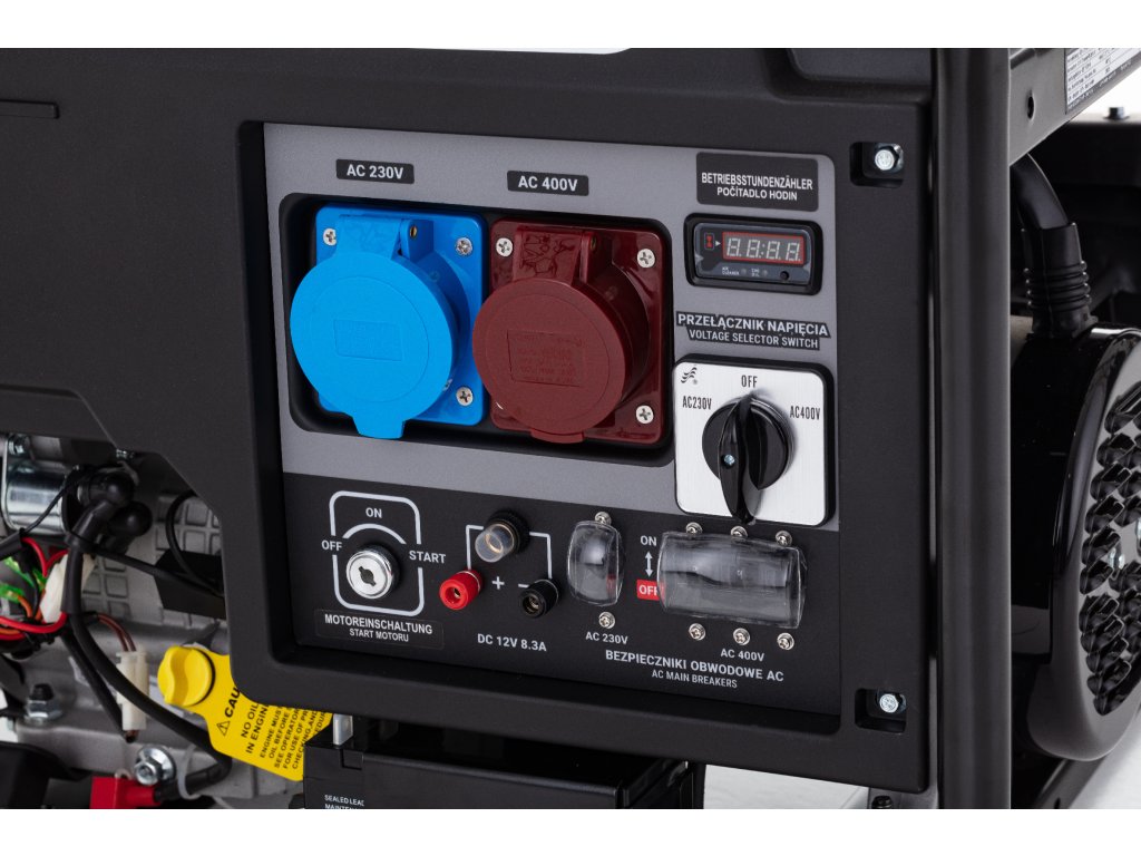 Vzduchem chlazený čtyřtaktní motor má velkou 25 l nádrž, která umožňuje dlouhý a bezproblémový provoz až 8 hodin. Generátor se spouští ručně i elektricky a dodává 230V a 400V. Výsledný výkon 10,6 kVA / 8,5 kW (maximální výkon, 400 V) a 10,0 kVA / 8,0 kW (jmenovitý výkon, 400V) dělá z generátoru výkonného společníka.