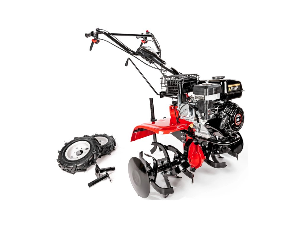 - S 3+3 noži a průměrem nožů 355 mm nabízí tento kultivátor vynikající výkon a efektivitu. Benzínový motor zajišťuje dlouhou pracovní dobu bez nutnosti dobíjení, a díky jednoduché převodovce s jedním převodem vpřed a zpětným chodem je manipulace s tímto strojem snadná i pro začátečníky. Kultivátor je navržen pro běžné zahradní práce a poskytuje stabilitu díky rozměrům 1450x850x1050 mm a hmotnosti 71 kg.
