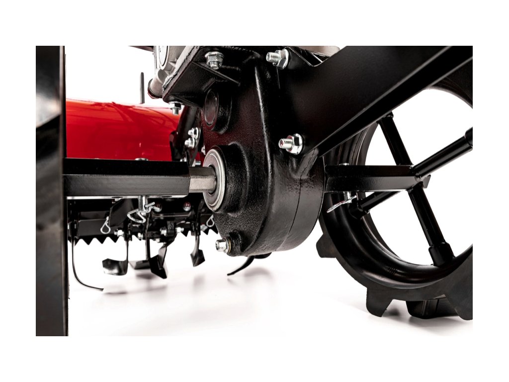 - Díky dvěma rychlostem vpřed a jedné zpátečce je ovládání snadné i v omezeném prostoru. Otočné nože s možností změny směru otáčení přizpůsobíte tvrdosti půdy. Stroj je vybaven převodovkou s mokrou spojkou a olejovou náplní převodovky i vzduchového filtru, což prodlužuje jeho životnost.
