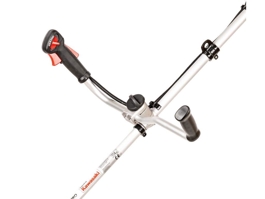 - Křovinořez má odlehčený start, nízkou hmotnost a optimálně vyvážené těžiště, což zajišťuje pohodlné ovládání. Je vybaven pevnou hnací hřídelí o průměru 28 mm, dvojitým ergonomickým řídítkem a profesionálními popruhy pro práci bez únavy.