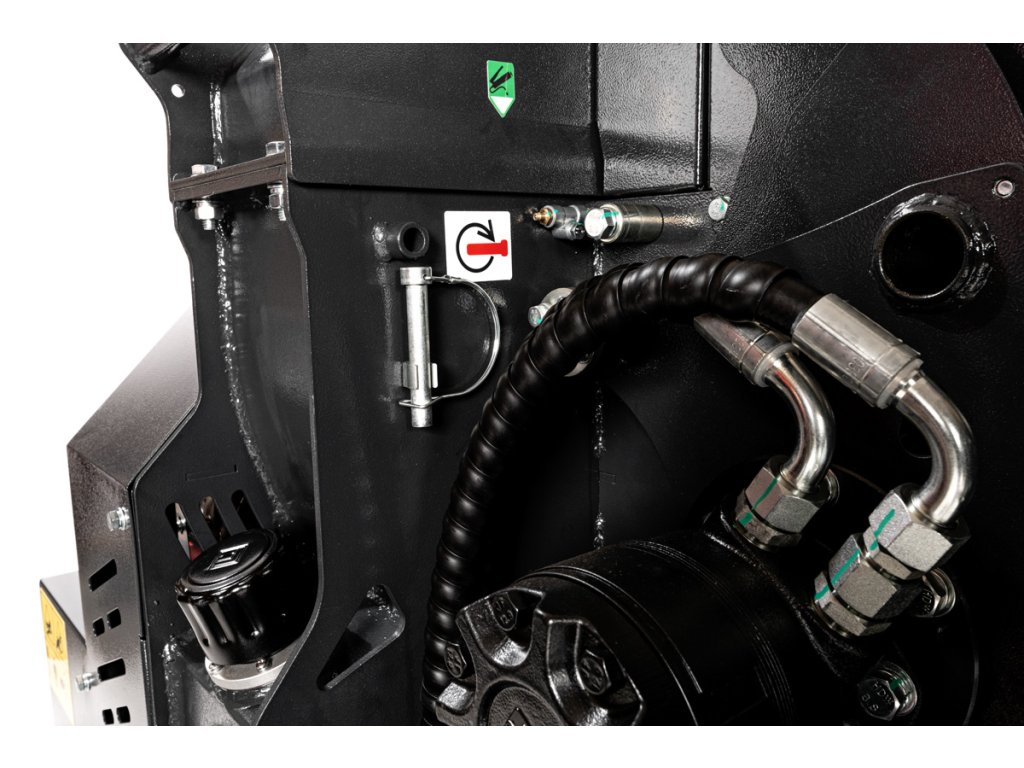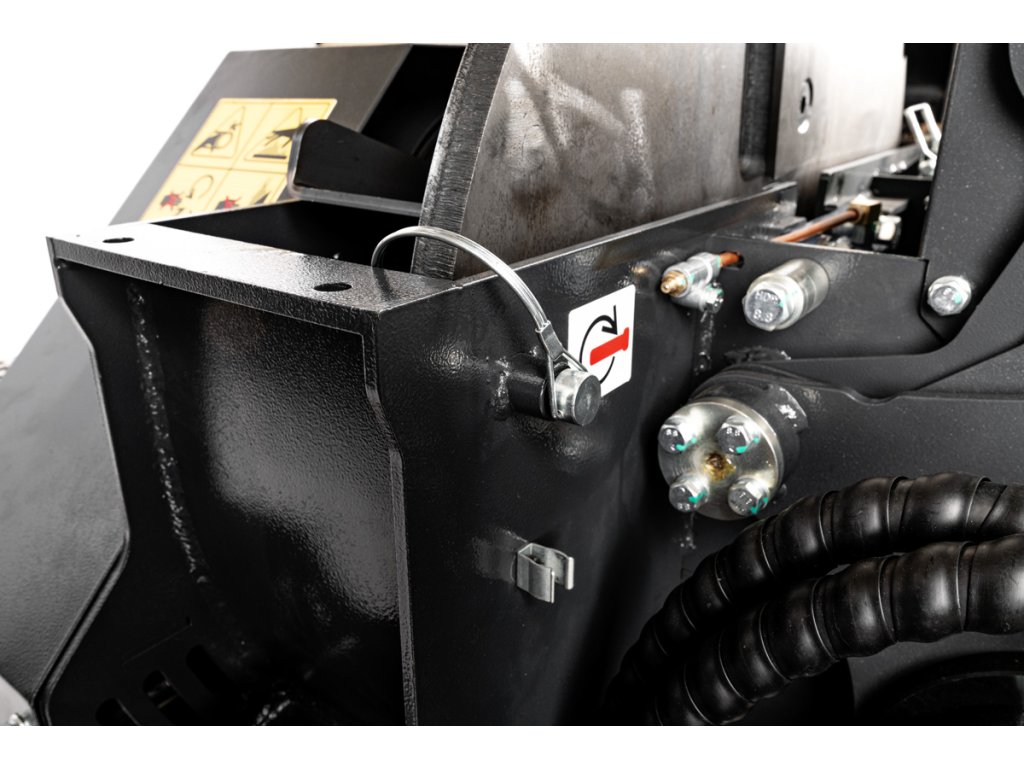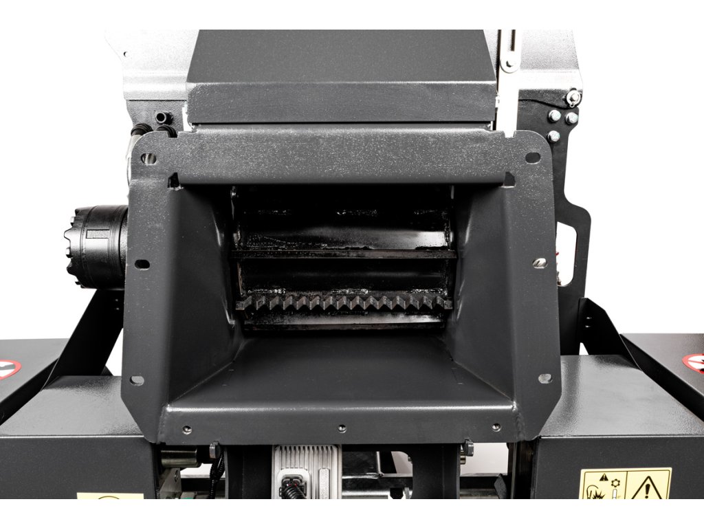 - Drtič využívá automatický hydraulický podavač řízený systémem iFS, který reguluje přísun materiálu podle rychlosti otáčení řezného kotouče. Tento systém chrání motor a zvyšuje celkovou efektivitu a bezpečnost.