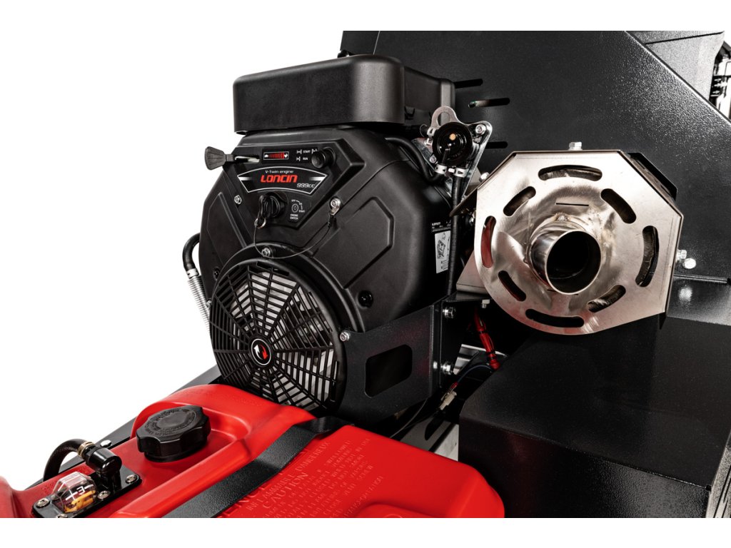 Model RBD16 je špičkový benzínový štěpkovač postavený pro maximální výkon, bezpečnost a mobilitu. Pohání jej robustní čtyřtaktní dvouválcový motor Loncin LC2V90FD o výkonu 24 kW / 999 cm³, startovaný elektricky. Oproti menším modelům nabízí diskový řezací systém se dvěma oboustrannými noži a dvojitým kovadlinkem (spodním a bočním), což zajišťuje vynikající kvalitu štěpky i při zpracování tvrdších dřevin.