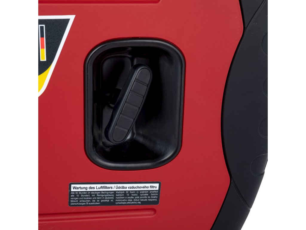 Tento typ elektrocentrály je velmi lehký a snadno přenosný. Váží pouhých 21 kg, což oceníte, když jej budete někam přenášet nebo například v obytném autě, kde je každé kilo navíc znát na spotřebě. S praktickým držadlem nebudou přesuny a cestování problém.