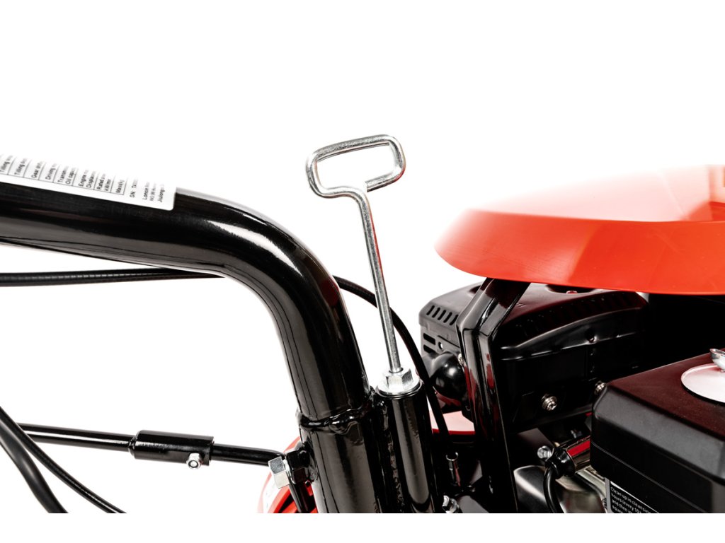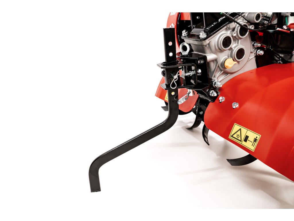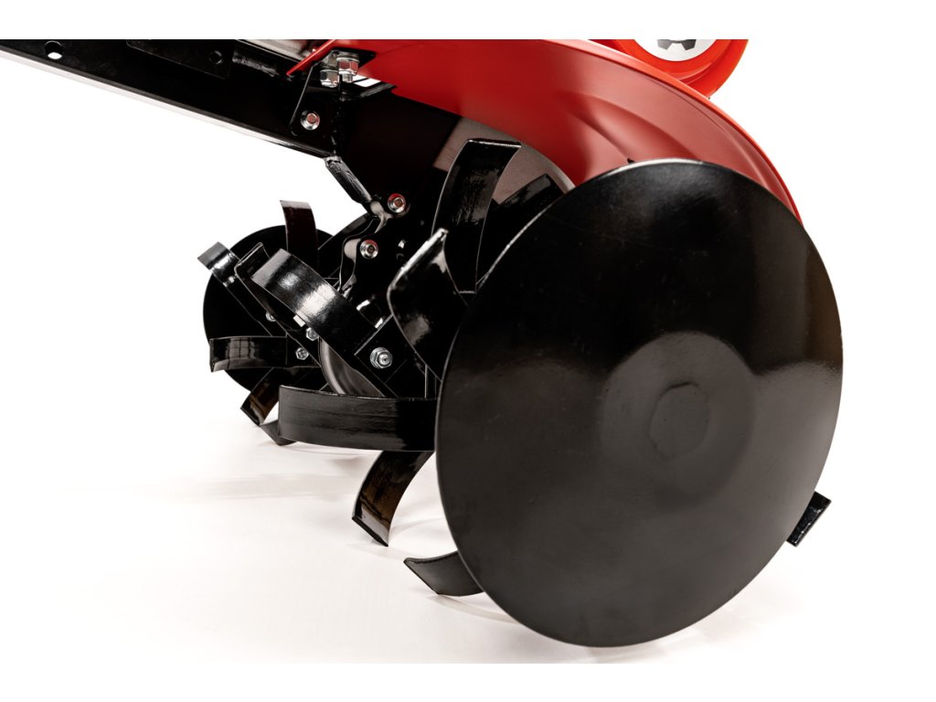 - Stroj má dvě rychlosti dopředu a jednu vzad, což usnadňuje ovládání v různých směrech a terénech. Pracovní šířka 60 až 90 cm se přizpůsobuje podle zvoleného nastavení a hloubka kultivace minimálně 100 mm umožňuje rozrušení horní vrstvy půdy. Systém 3+3 nože zajišťuje efektivní drcení a promíchávání zeminy.