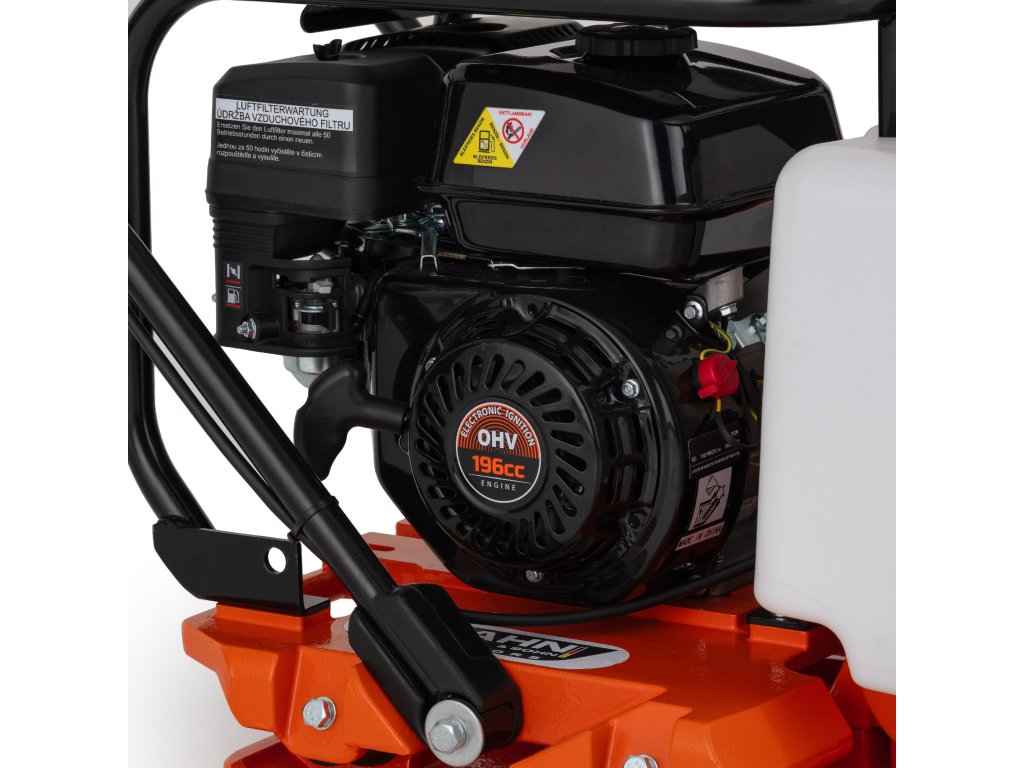 Tato výkonná vibrační deska je vybavena silným benzínovým motorem s maximálním výkonem až 4,2 kW a jmenovitým výkonem 3,8 kW, což zaručuje efektivní a rychlé provedení práce. Pro svou váhu 95 kg je vhodná zejména pro hutnění dlažby, pro kterou se doporučují lehčí vibrační desky s váhou do 100kg, abyste nepoškodili strukturu dlažby nebo neuštípali hrany. Za hodinu jste s tímto modelem schopni zhutnit až 315 m2.