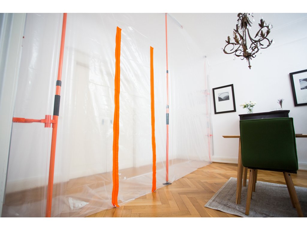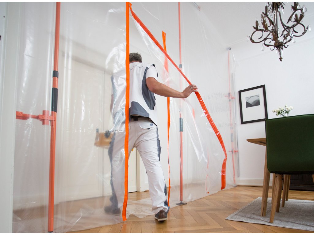 - Časově úsporná instalace a demontáž bez časově náročného zakrytí/maskování dveří, oken a nábytku