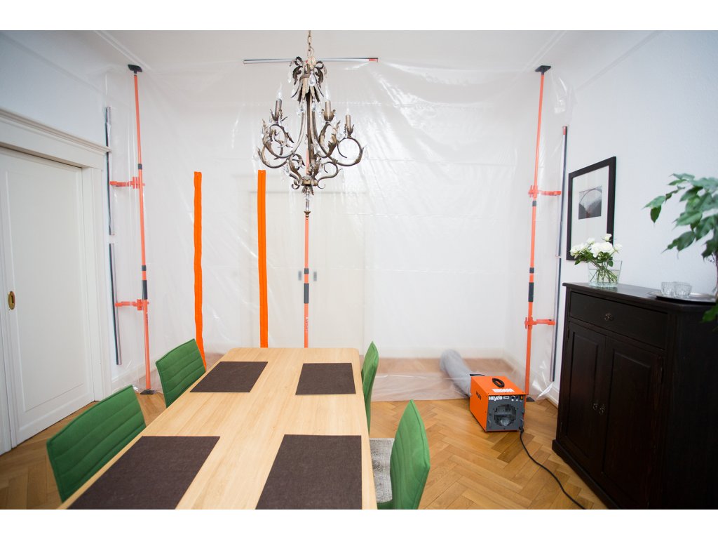 - Časově úsporná instalace a demontáž bez časově náročného zakrytí/maskování dveří, oken a nábytku