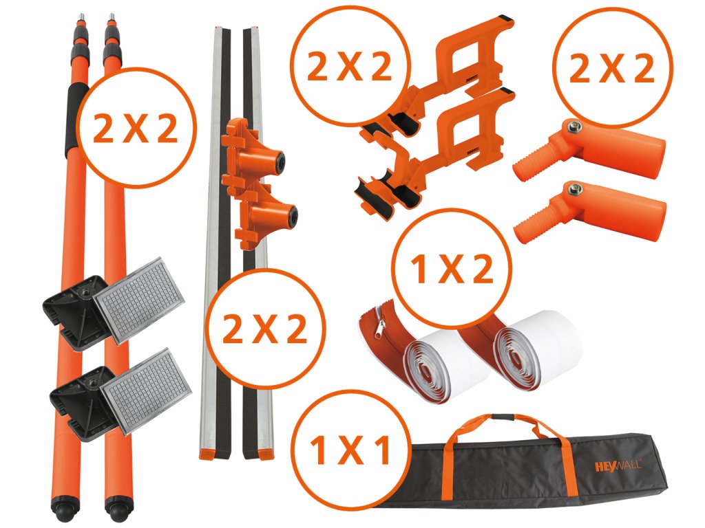 - 4 výsuvné systémové tyče (vysoké až 3,60 m) včetně hlavních a nožních desek