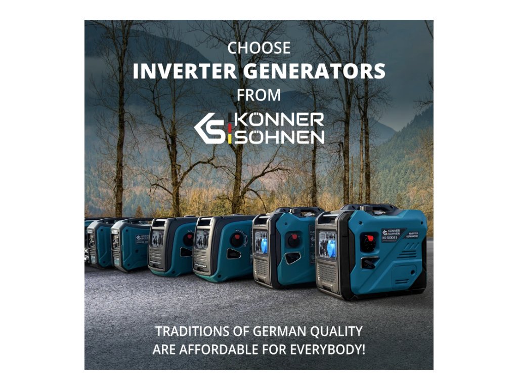 Könner & Söhnen KS 6000iE S je výkonný a přitom kompaktní invertorový generátor s čistou sinusovou vlnou, který je určen pro napájení citlivé elektroniky i běžných domácích spotřebičů. Díky maximálnímu výkonu 5,5 kW a úspornému režimu ECO dokáže efektivně přizpůsobit spotřebu paliva aktuální zátěži.