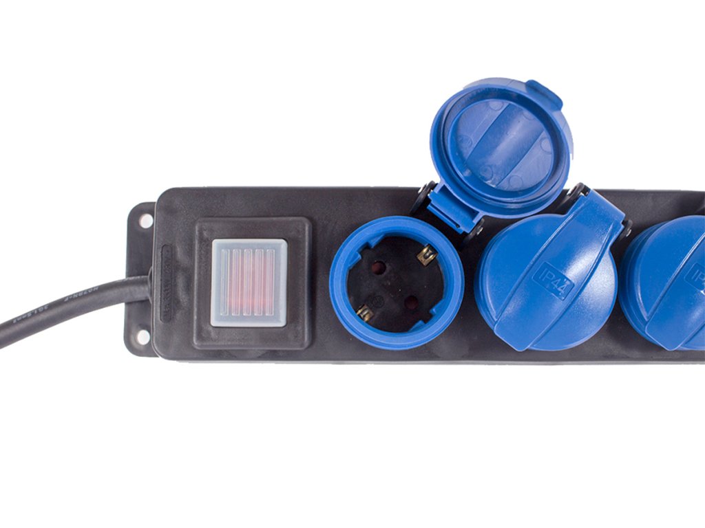 Kempovací zásuvková lišta s vypínačem se světelným indikátorem napětí 3cestná - 1,5m