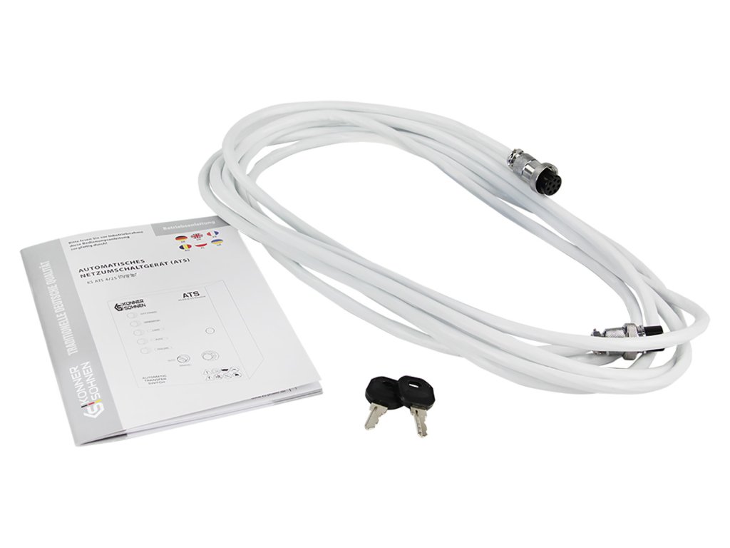 Automatický přepínač KS ATS 4/25 Inverter (jednotka ATS) německé značky „Könner und Söhnen“ automaticky spustí generátor při výpadku primárního napájení a po jeho obnovení jej zastaví. Je kompatibilní s invertorovým generátorem „Könner & Söhnen“ KS 5500iES ATSR s vestavěnou 7kolíkovou připojovací zásuvkou ATS.