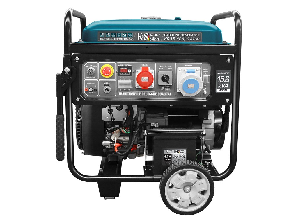 Vysoce výkonná benzínová elektrocentrála KS 15-1E 1/3 ATSR je založena na robustním proprietárním dvouválcovém motoru o výkonu 22 HP od společnosti „Könner & Söhnen“, který splňuje všechny evropské normy kvality včetně nejnovějších emisních norem EURO V.